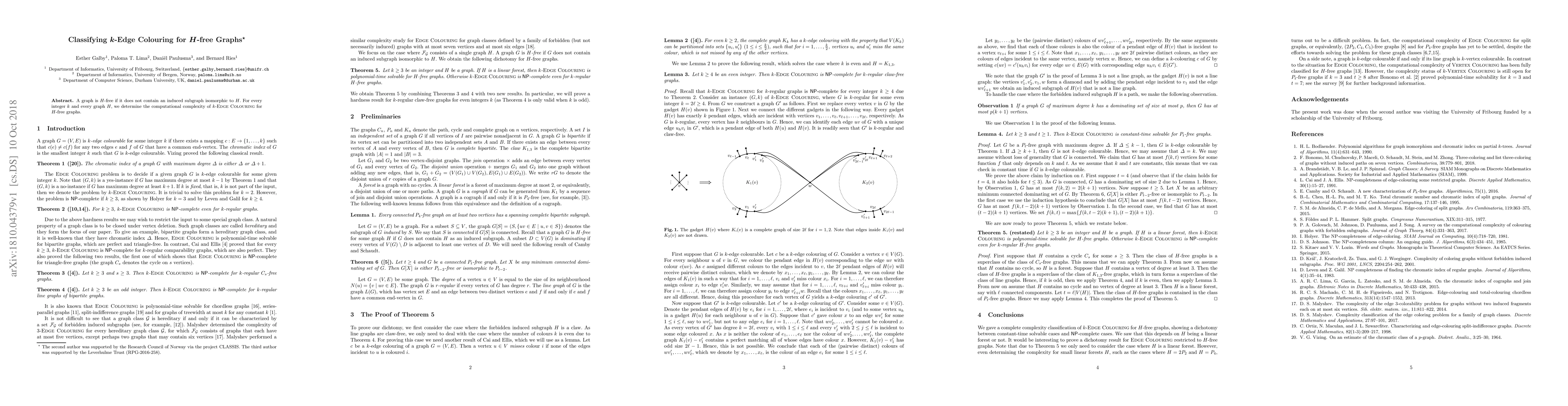 This work contributes to the complexity classification of graph coloring problems, specifically k-Edge Colouring, which has implications for algorithm design and understanding the computational hardness of graph problems in restricted graph classes.