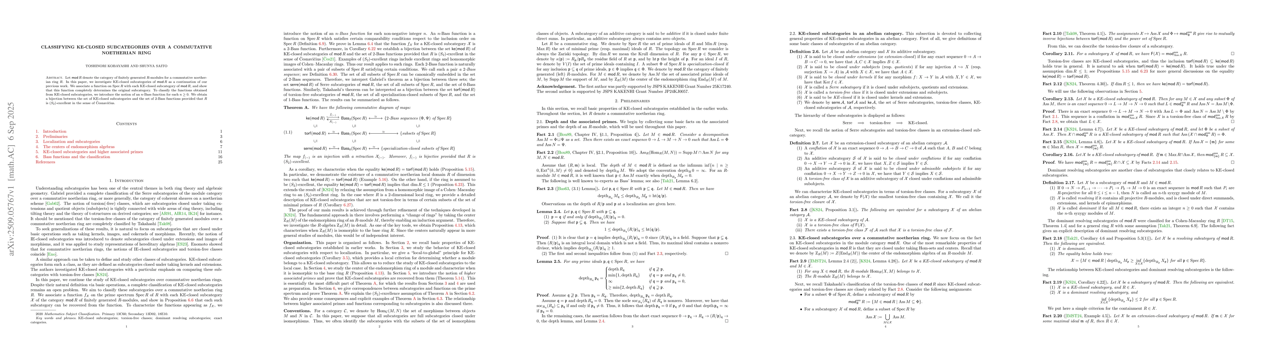Let $\mathsf{mod} R$ denote the category of finitely generated $R$-modules for a commutative noetherian ring $R$. In this paper, we investigate KE-closed subcategories of $\mathsf{mod} R$ as a continuation of our previous work. We associate a function on $\mathrm{Spec} R$ with each KE-closed subcategory of $\mathsf{mod} R$, and show that this function completely determines the original subcategory. To classify the functions obtained from KE-closed subcategories, we introduce the notion of an $n$-Bass function for each $n\ge 0$. We obtain a bijection between the set of KE-closed subcategories and the set of $2$-Bass functions provided that $R$ is $(S_2)$-excellent in the sense of \v{C}esnavi\v{c}ius.