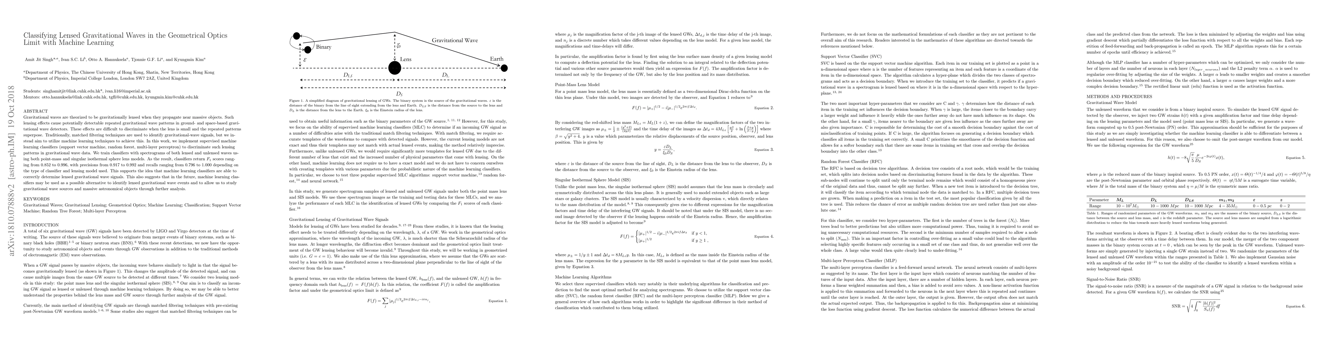 This paper explores the use of supervised machine learning classifiers to identify gravitational wave signals that have been lensed by massive objects. The study trains classifiers on spectrograms of both lensed and unlensed waves, achieving high F1 scores, precisions, and recalls, suggesting that machine learning can effectively discriminate lensed gravitational wave patterns.