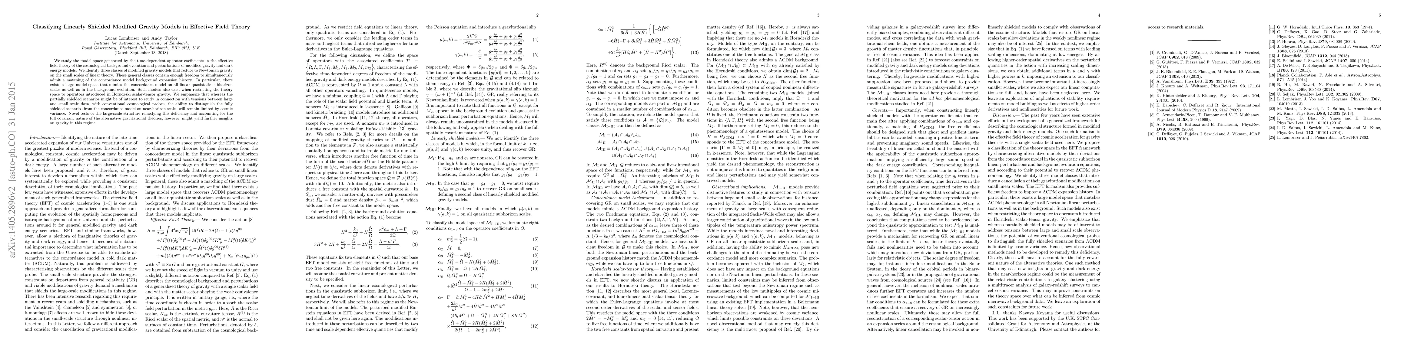 This paper classifies modified gravity models in effective field theory, identifying three classes that behave like Newtonian gravity on small scales. It finds a large model space that mimics the concordance model on linear quasistatic subhorizon scales, even within Horndeski scalar-tensor gravity, though distinguishing fully shielded scenarios from the concordance model remains challenging due to cosmic variance.