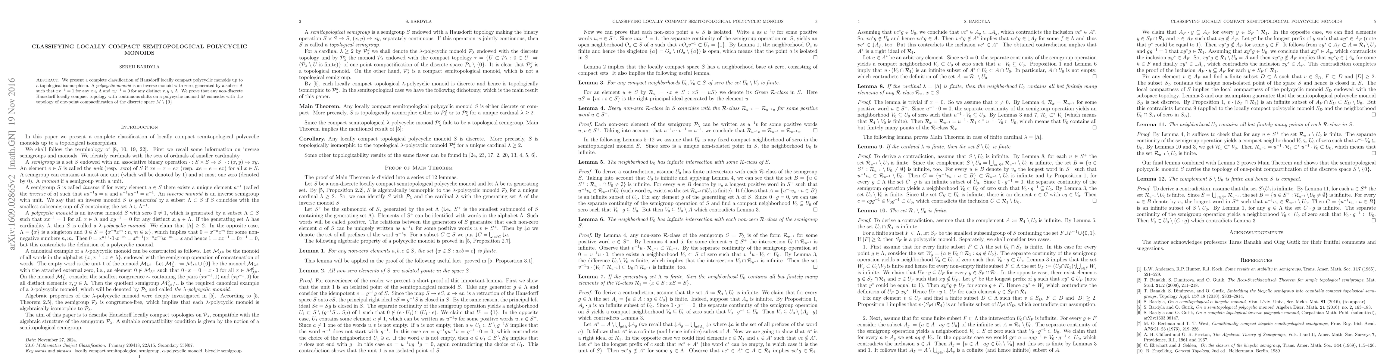 This research contributes to the classification theory of topological monoids, specifically polycyclic ones, which have applications in areas like automata theory and formal language theory.
