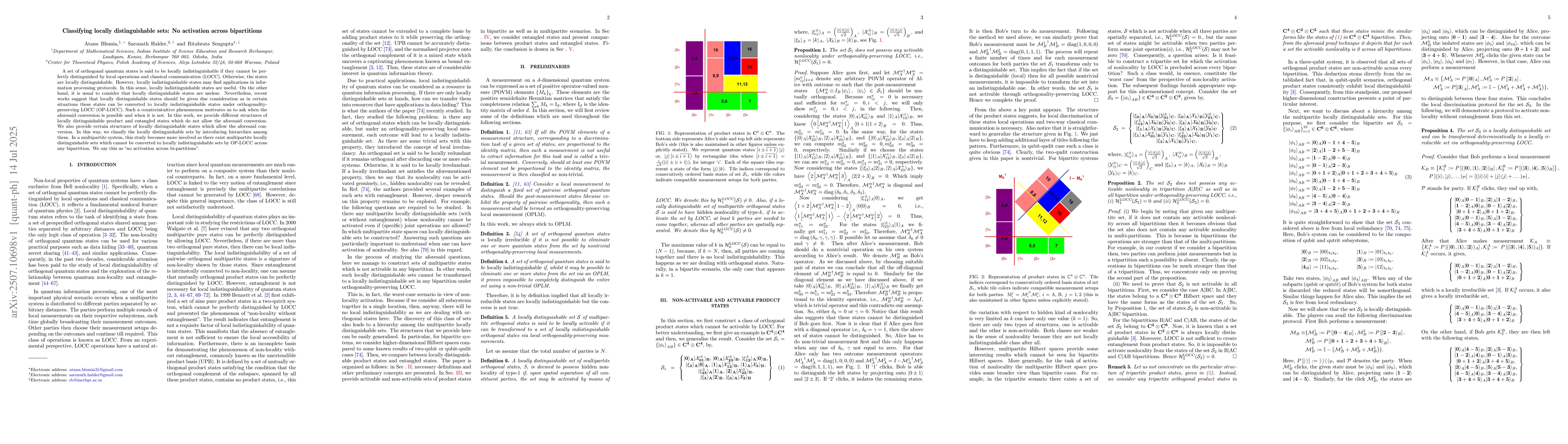 A set of orthogonal quantum states is said to be locally indistinguishable if they cannot be perfectly distinguished by local operations and classical communication (LOCC). Otherwise, the states are locally distinguishable. However, locally indistinguishable states may find applications in information processing protocols. In this sense, locally indistinguishable states are useful. On the other hand, it is usual to consider that locally distinguishable states are useless. Nevertheless, recent works suggest that locally distinguishable states should be given due consideration as in certain situations these states can be converted to locally indistinguishable states under orthogonality-preserving LOCC (OP-LOCC). Such a counterintuitive phenomenon motivates us to ask when the aforesaid conversion is possible and when it is not. In this work, we provide different structures of locally distinguishable product and entangled states which do not allow the aforesaid conversion. We also provide certain structures of locally distinguishable states which allow the aforesaid conversion. In this way, we classify the locally distinguishable sets by introducing hierarchies among them. In a multipartite system, this study becomes more involved as there exist multipartite locally distinguishable sets which cannot be converted to locally indistinguishable sets by OP-LOCC across any bipartition. We say this as ``no activation across bi-partitions".