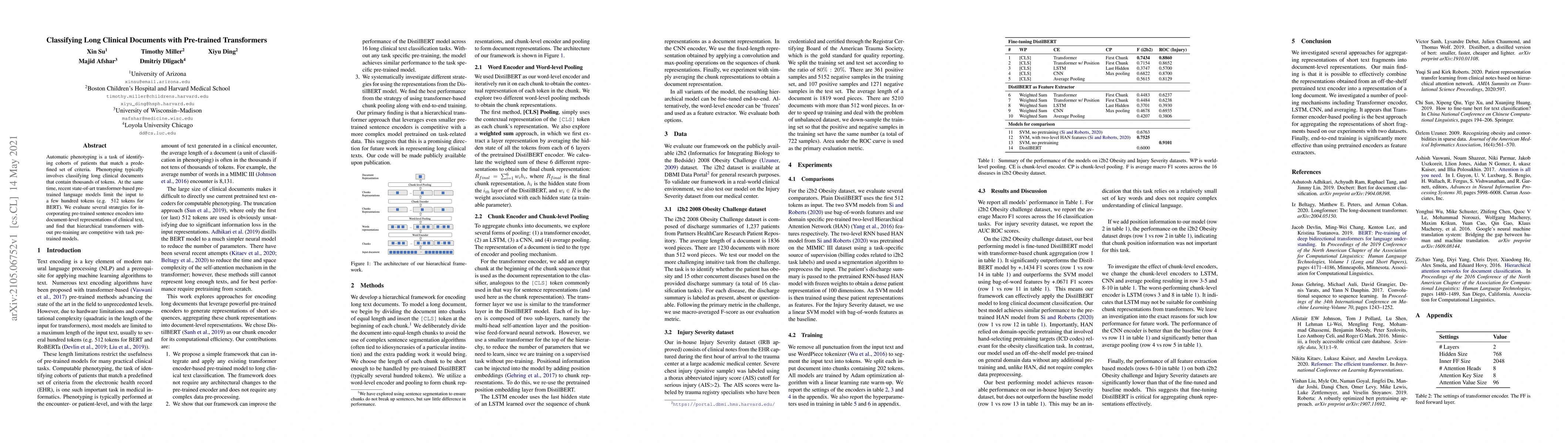 This paper explores methods to classify long clinical documents for automatic phenotyping using pre-trained transformers, finding that hierarchical transformers without additional pre-training can perform competitively compared to task-specific pre-trained models.