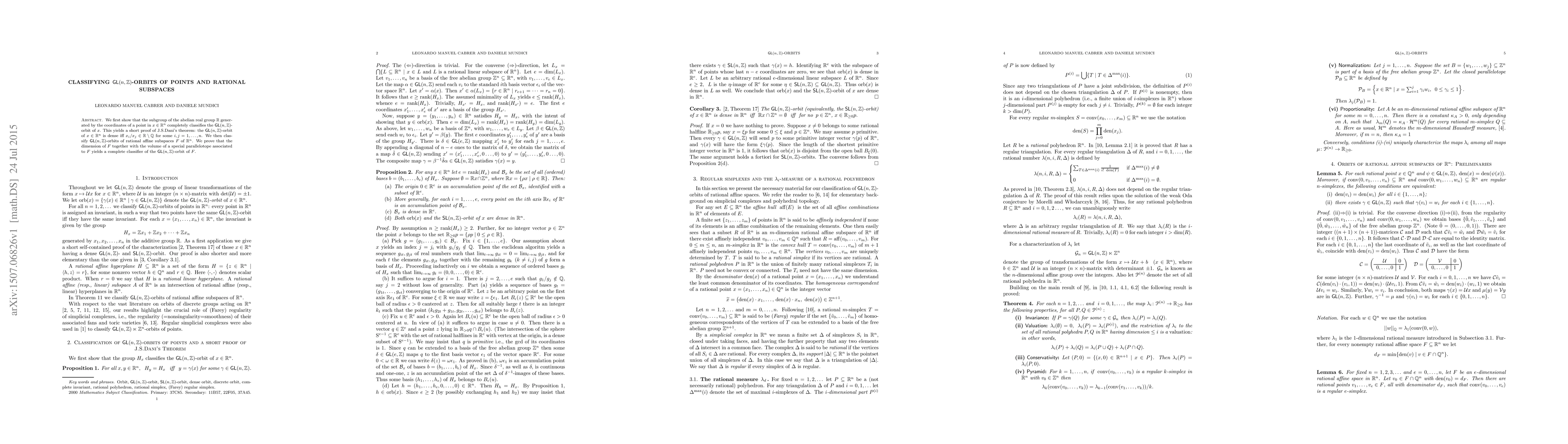 We first show that the subgroup of the abelian real group $\mathbb{R}$ generated by the coordinates of a point in $x = (x_1,\dots,x_n)\in\mathbb{R}^n$ completely classifies the $\mathsf{GL}(n,\mathbb Z)$-orbit of $x$. This yields a short proof of J.S.Dani's theorem: the $\mathsf{GL}(n,\mathbb Z)$-orbit of $x\in\mathbb{R}^n$ is dense iff $x_i/x_j\in \mathbb{R} \setminus \mathbb Q$ for some $i,j=1,\dots,n$. We then classify $\mathsf{GL}(n,\mathbb Z)$-orbits of rational affine subspaces $F$ of $\mathbb{R}^n$. We prove that the dimension of $F$ together with the volume of a special parallelotope associated to $F$ yields a complete classifier of the $\mathsf{GL}(n,\mathbb Z)$-orbit of $F$.