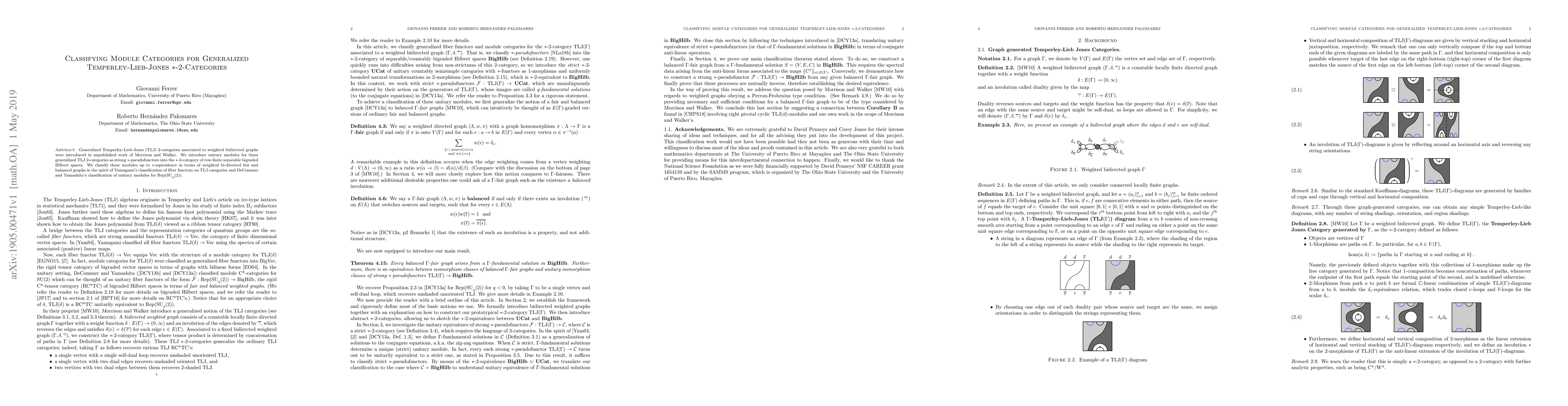 Generalized Temperley-Lieb-Jones (TLJ) 2-categories associated to weighted bidirected graphs were introduced in unpublished work of Morrison and Walker. We introduce unitary modules for these generalized TLJ 2-categories as strong *-pseudofunctors into the *-2-category of row-finite separable bigraded Hilbert spaces. We classify these modules up to *-equivalence in terms of weighted bi-directed fair and balanced graphs in the spirit of Yamagami's classification of fiber functors on TLJ categories and DeCommer and Yamashita's classification of unitary modules for Rep(SUq(2)).