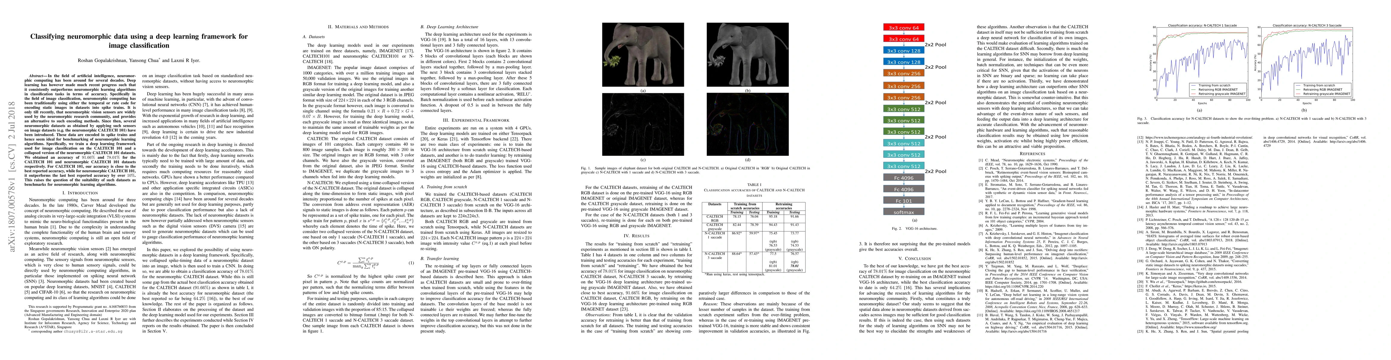 This paper explores the use of deep learning for classifying neuromorphic data in image classification tasks, achieving 91.66% accuracy on the CALTECH 101 dataset and 78.01% on a neuromorphic version, outperforming previous neuromorphic benchmarks by over 10%. It questions the suitability of neuromorphic datasets for neuromorphic learning algorithms.
