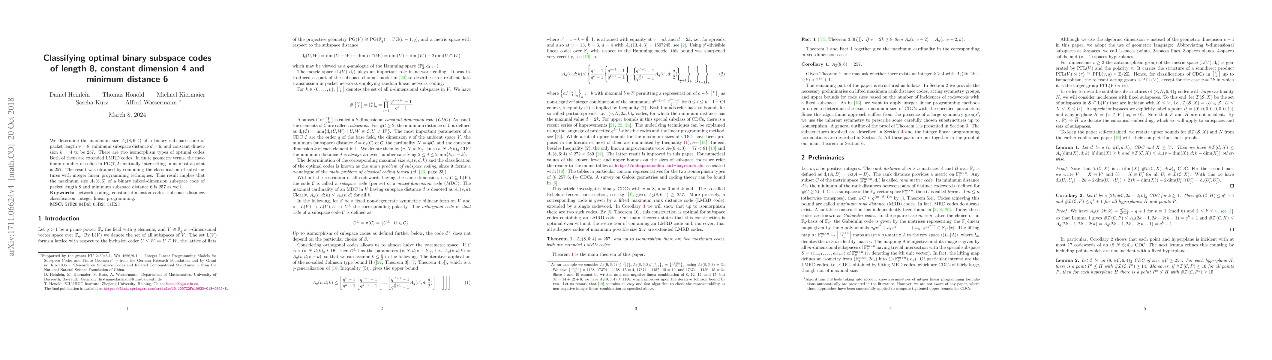 This paper classifies optimal binary subspace codes of length 8, constant dimension 4, and minimum distance 6, finding that the maximum size is 257, represented by two isomorphism types. The result uses a combination of substructure classification and integer linear programming.