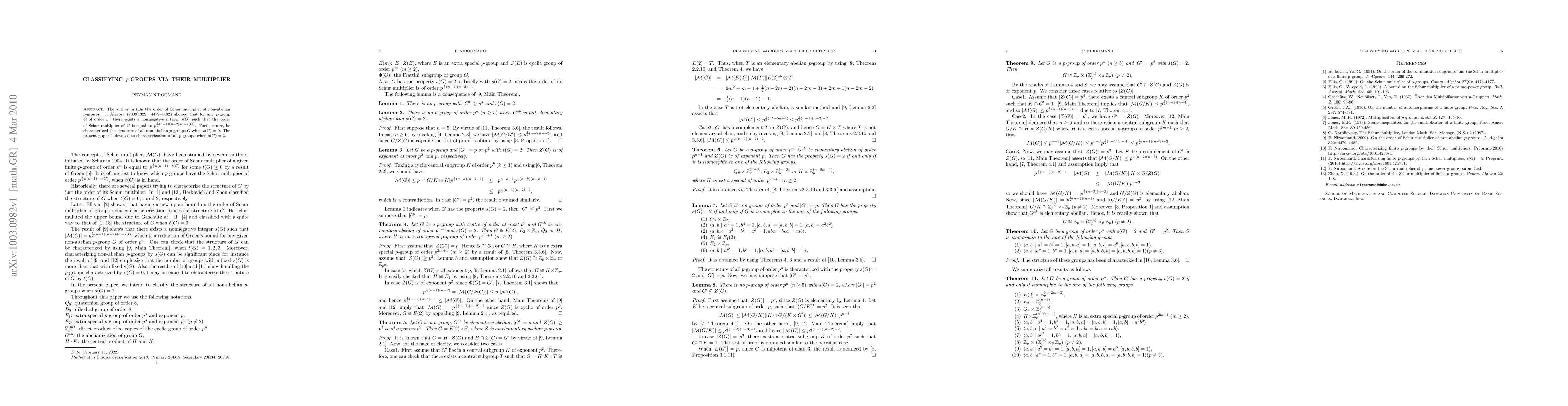 The author in $($On the order of Schur multiplier of non-abelian $p$-groups. J. Algebra (2009).322: 4479--4482$)$ showed that for any $p$-group $G$ of order $p^n$ there exists a nonnegative integer $s(G)$ such that the order of Schur multiplier of $G$ is equal to $p^{\f{1}{2}(n-1)(n-2)+1-s(G)}$. Furthermore, he characterized the structure of all non-abelian $p$-groups $G$ when $s(G)=0$. The present paper is devoted to characterization of all $p$-groups when $s(G)=2$.