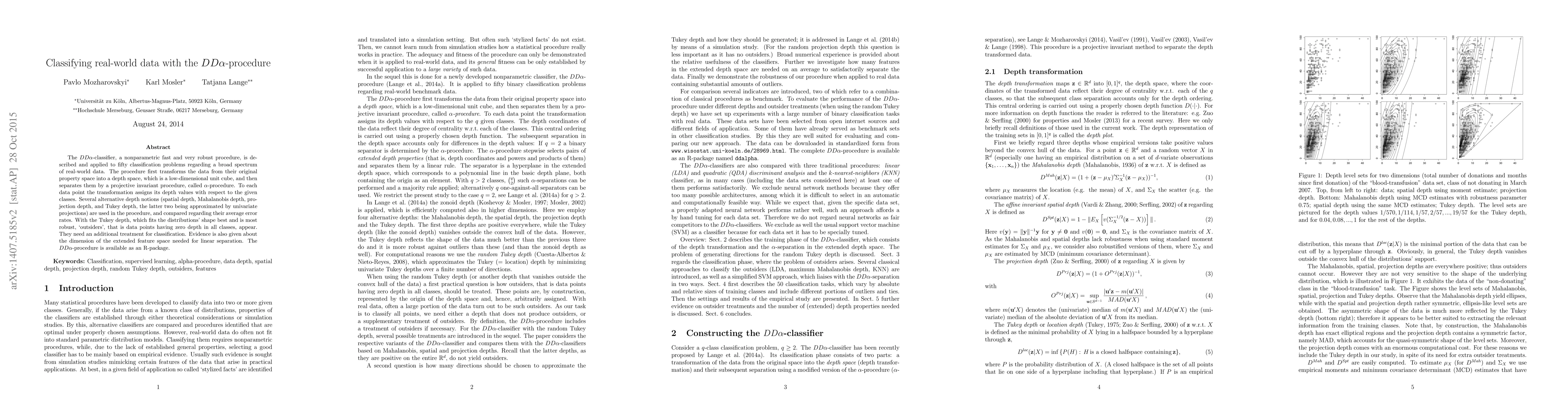 The $DD\alpha$-procedure is a robust nonparametric classifier transforming real-world data into a depth space for classification, comparing various depth notions and showing Tukey depth as the most effective. The procedure is available as an R-package.