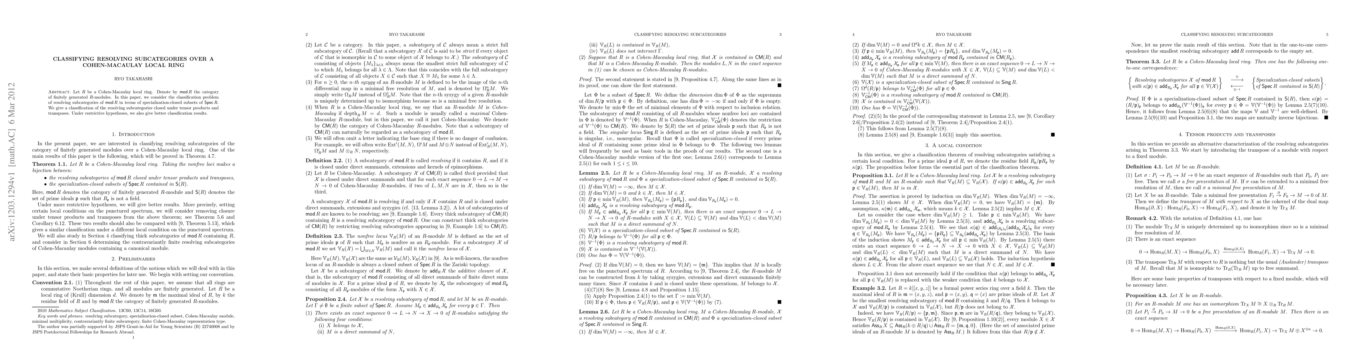 This paper classifies resolving subcategories of finitely generated modules over a Cohen-Macaulay local ring in terms of specialization-closed subsets of the ring's spectrum. It provides a detailed classification for those subcategories closed under tensor products and transposes, with improved results under specific conditions.