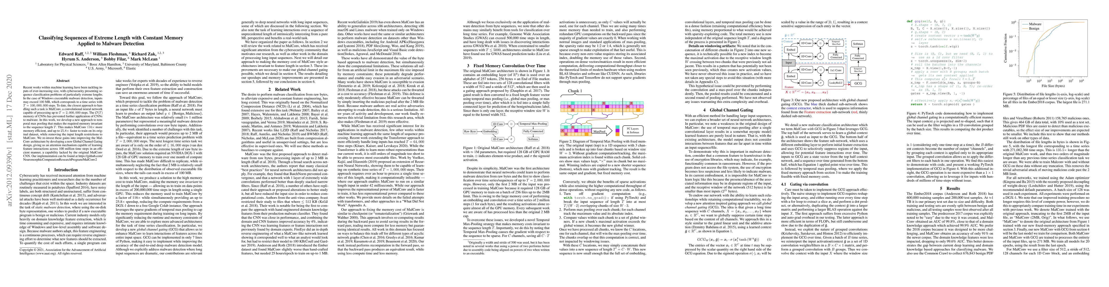 Recent works within machine learning have been tackling inputs of ever-increasing size, with cybersecurity presenting sequence classification problems of particularly extreme lengths. In the case of Windows executable malware detection, inputs may exceed $100$ MB, which corresponds to a time series with $T=100,000,000$ steps. To date, the closest approach to handling such a task is MalConv, a convolutional neural network capable of processing up to $T=2,000,000$ steps. The $\mathcal{O}(T)$ memory of CNNs has prevented further application of CNNs to malware. In this work, we develop a new approach to temporal max pooling that makes the required memory invariant to the sequence length $T$. This makes MalConv $116\times$ more memory efficient, and up to $25.8\times$ faster to train on its original dataset, while removing the input length restrictions to MalConv. We re-invest these gains into improving the MalConv architecture by developing a new Global Channel Gating design, giving us an attention mechanism capable of learning feature interactions across 100 million time steps in an efficient manner, a capability lacked by the original MalConv CNN. Our implementation can be found at https://github.com/NeuromorphicComputationResearchProgram/MalConv2