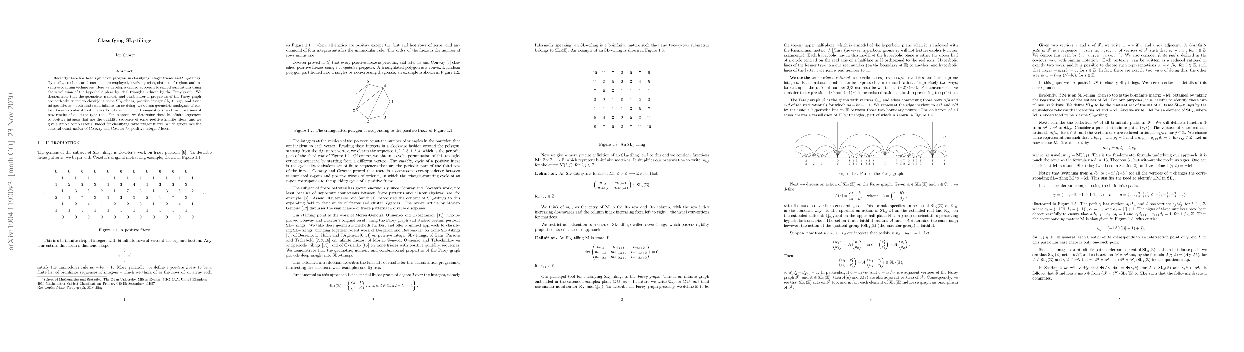 This paper develops a unified geometric approach using hyperbolic tessellation by ideal triangles to classify various $\text{SL}_2$-tilings and integer friezes, proving new results and providing combinatorial models that generalize existing constructions.