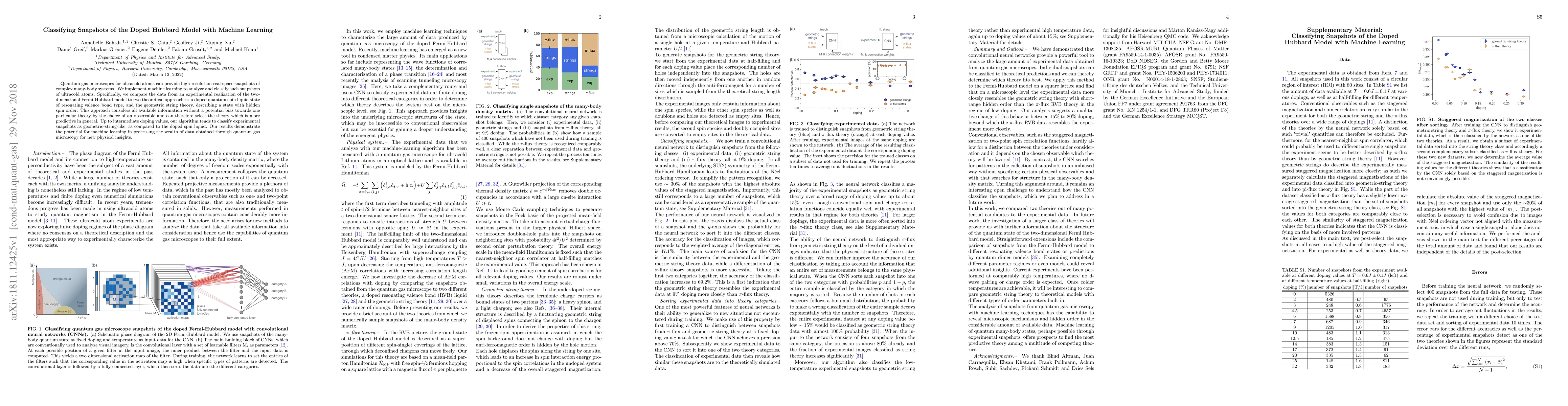 This paper uses machine learning to classify snapshots of the doped Hubbard model obtained from quantum gas microscopy, comparing experimental data to theoretical models of quantum spin liquids and geometric string theory. The results suggest that, up to intermediate doping levels, the snapshots align more closely with the geometric string theory, highlighting machine learning's potential in extracting new physical insights from complex many-body systems.