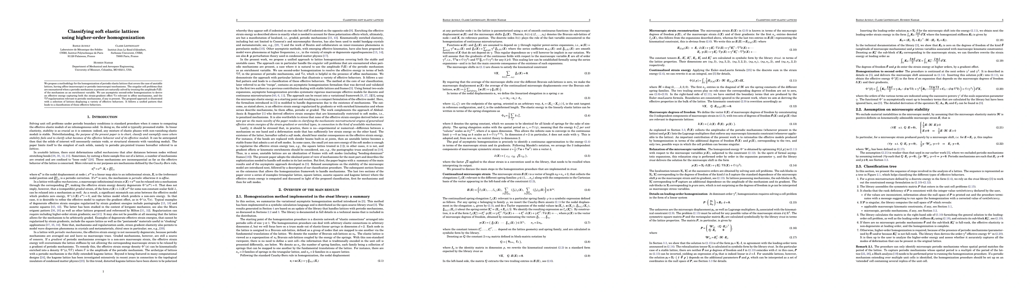 We propose a methodology for the homogenization of periodic elastic lattices that covers the case of unstable lattices, having affine (macroscopic) or periodic (microscopic) mechanisms. The singular cell problems that are encountered when a periodic mechanism is present are naturally solved by treating the amplitude $\theta(X)$ of the mechanism as an enrichment variable. We use asymptotic second-order homogenization to derive an effective energy capturing both the strain-gradient effect $\nabla \varepsilon$ relevant to affine mechanisms, and the $\nabla \theta$ regularization relevant to periodic mechanisms, if any is present. The proposed approach is illustrated with a selection of lattices displaying a variety of effective behaviors. It follows a unified pattern that leads to a classification of these effective behaviors.