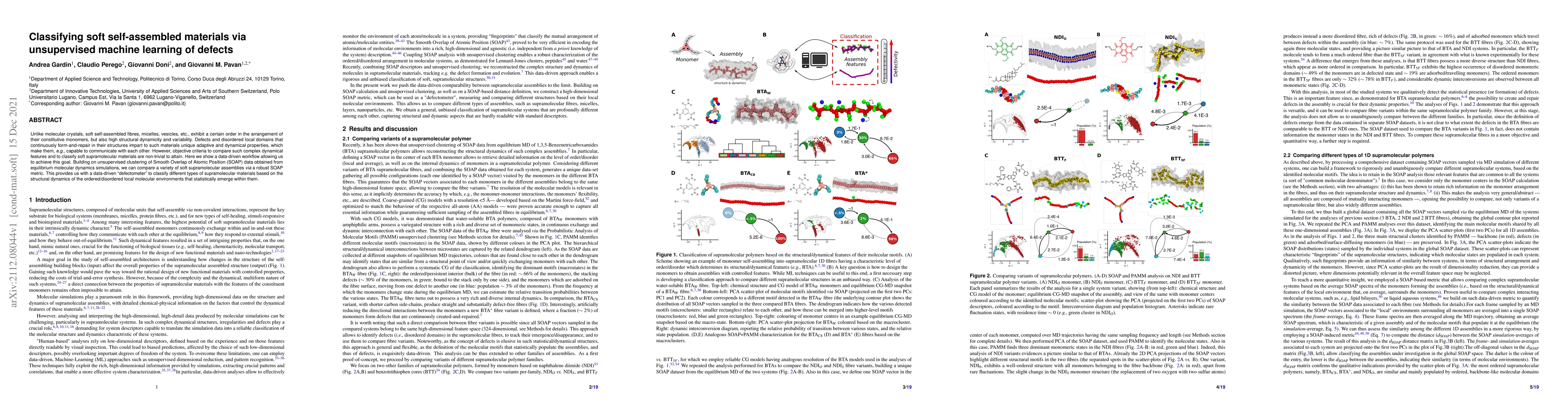 The research employs unsupervised machine learning, specifically using Smooth Overlap of Atomic Position (SOAP) descriptors and Principal Component Analysis (PCA), to classify and compare soft self-assembled materials based on their structural dynamics and defects.
