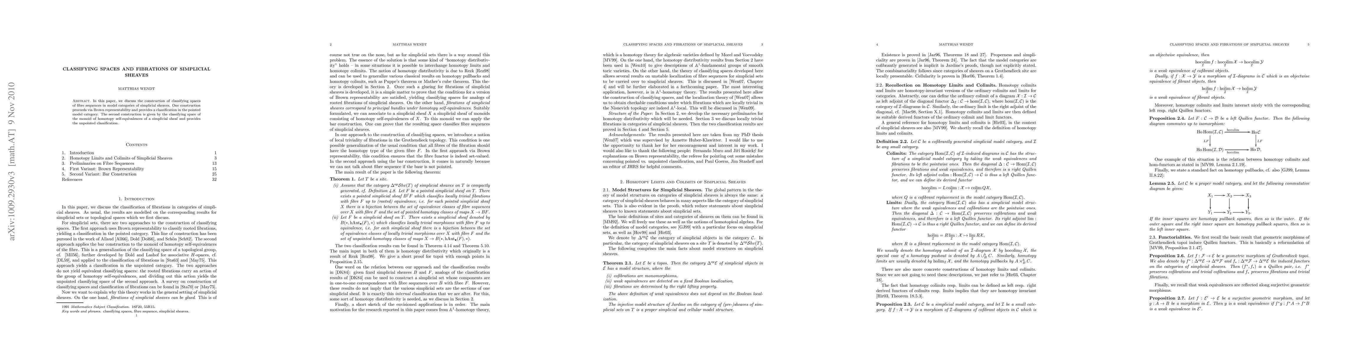 This paper constructs classifying spaces for fibrations in simplicial sheaves, offering two approaches: one via Brown representability for pointed model categories and another using the monoid of homotopy self-equivalences for unpointed classification.