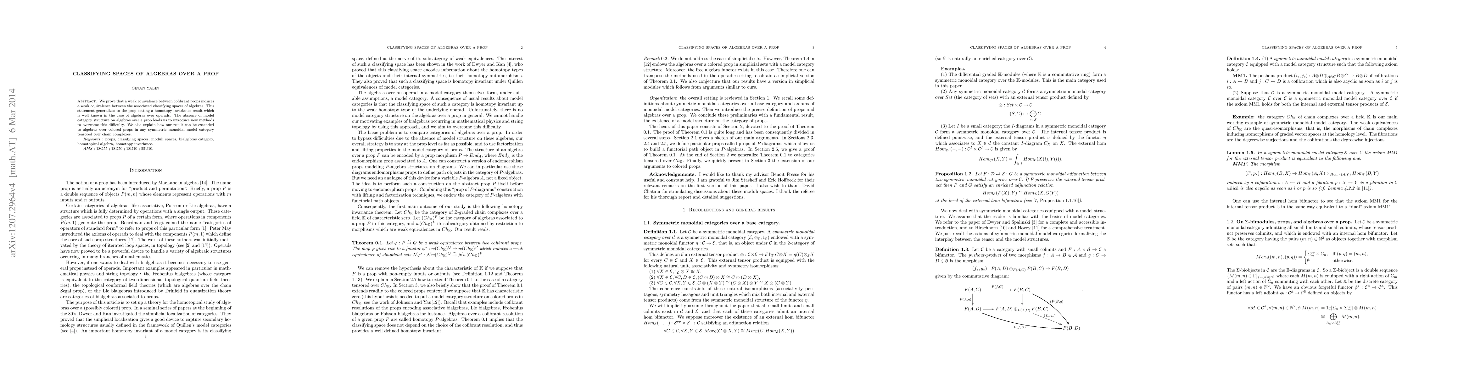 This paper proves that weak equivalences between cofibrant props induce weak equivalences between their associated classifying spaces of algebras, extending a known result for algebras over operads. New methods are introduced to address the lack of model category structure for algebras over props, and the results are extended to algebras over colored props in symmetric monoidal model categories tensored over chain complexes.