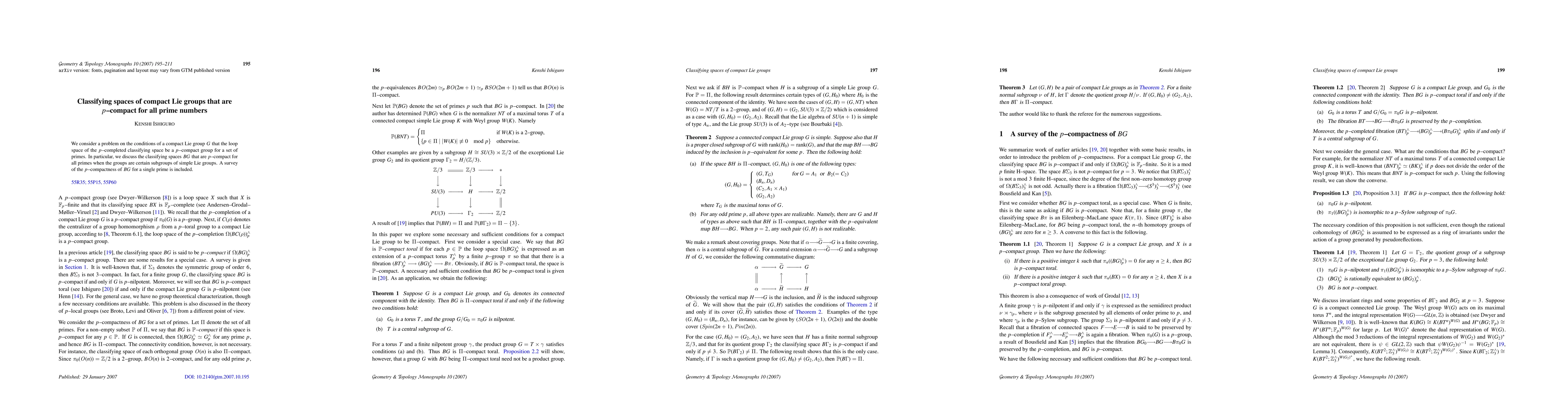 This paper investigates conditions under which the classifying space of a compact Lie group G is p-compact for all prime numbers, focusing on certain subgroups of simple Lie groups. It includes a survey of previous results on the p-compactness of classifying spaces for individual primes.