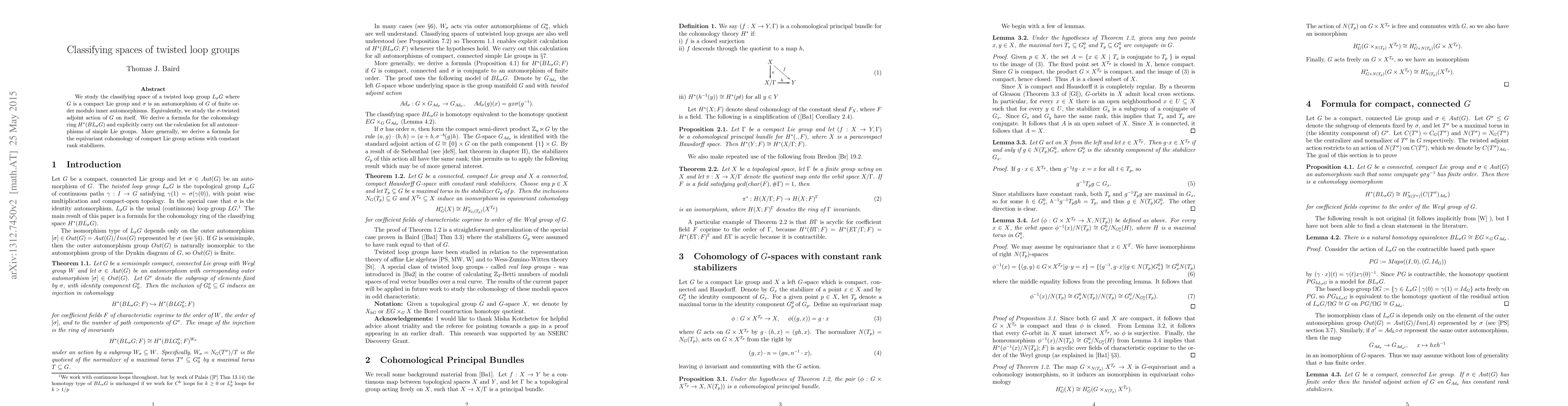 We study the classifying space of a twisted loop group $L_{\sigma}G$ where $G$ is a compact Lie group and $\sigma$ is an automorphism of $G$ of finite order modulo inner automorphisms. Equivalently, we study the $\sigma$-twisted adjoint action of $G$ on itself. We derive a formula for the cohomology ring $H^*(BL_{\sigma}G)$ and explicitly carry out the calculation for all automorphisms of simple Lie groups. More generally, we derive a formula for the equivariant cohomology of compact Lie group actions with constant rank stabilizers.