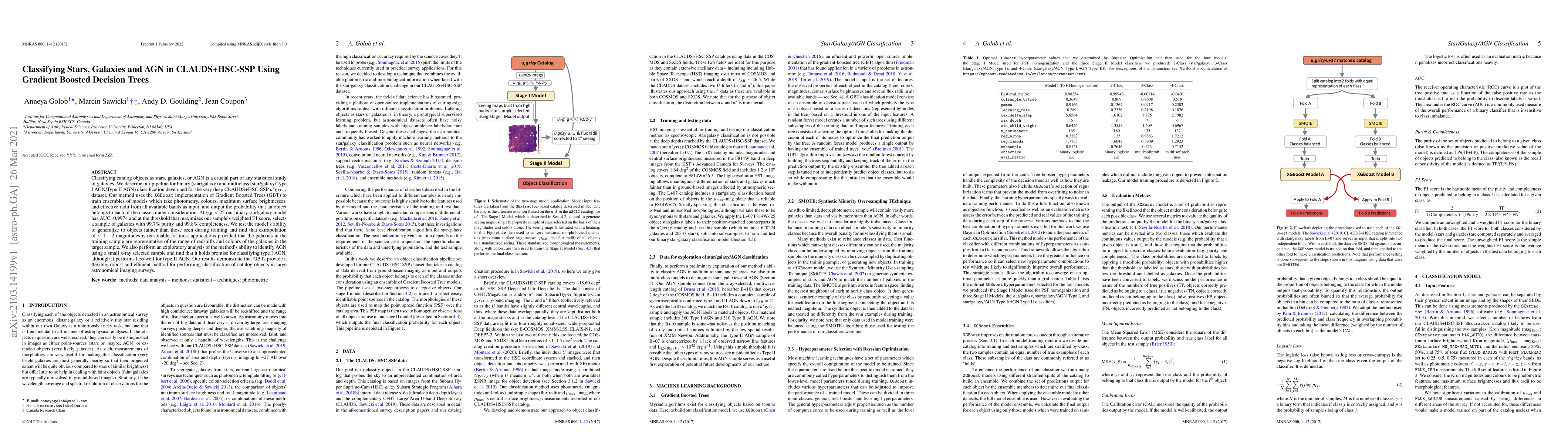 This paper presents a classification pipeline using Gradient Boosted Trees (GBT) to distinguish stars, galaxies, and AGN in the CLAUDS+HSC-SSP dataset. The method achieves high accuracy in binary star/galaxy classification and multiclass AGN classification, demonstrating the effectiveness of GBTs for large astronomical surveys.