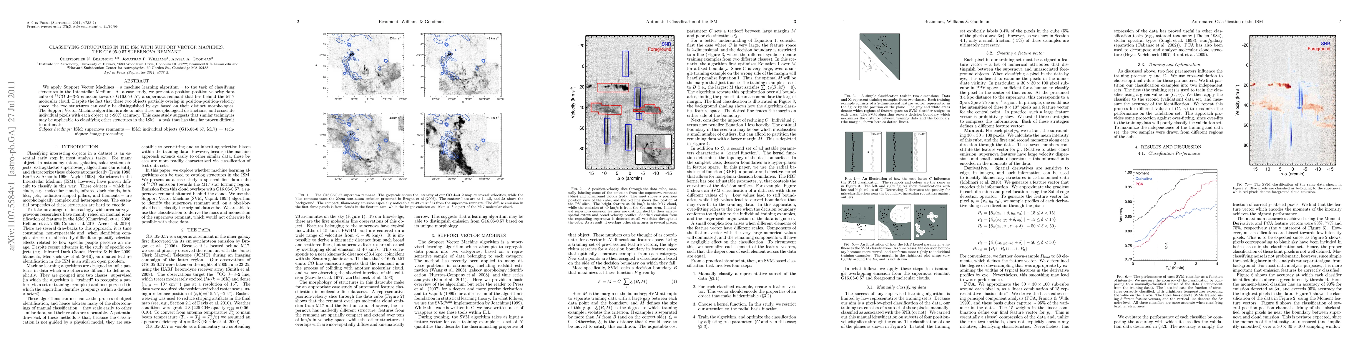 We apply Support Vector Machines -- a machine learning algorithm -- to the task of classifying structures in the Interstellar Medium. As a case study, we present a position-position velocity data cube of 12 CO J=3--2 emission towards G16.05-0.57, a supernova remnant that lies behind the M17 molecular cloud. Despite the fact that these two objects partially overlap in position-position-velocity space, the two structures can easily be distinguished by eye based on their distinct morphologies. The Support Vector Machine algorithm is able to infer these morphological distinctions, and associate individual pixels with each object at >90% accuracy. This case study suggests that similar techniques may be applicable to classifying other structures in the ISM -- a task that has thus far proven difficult to automate.