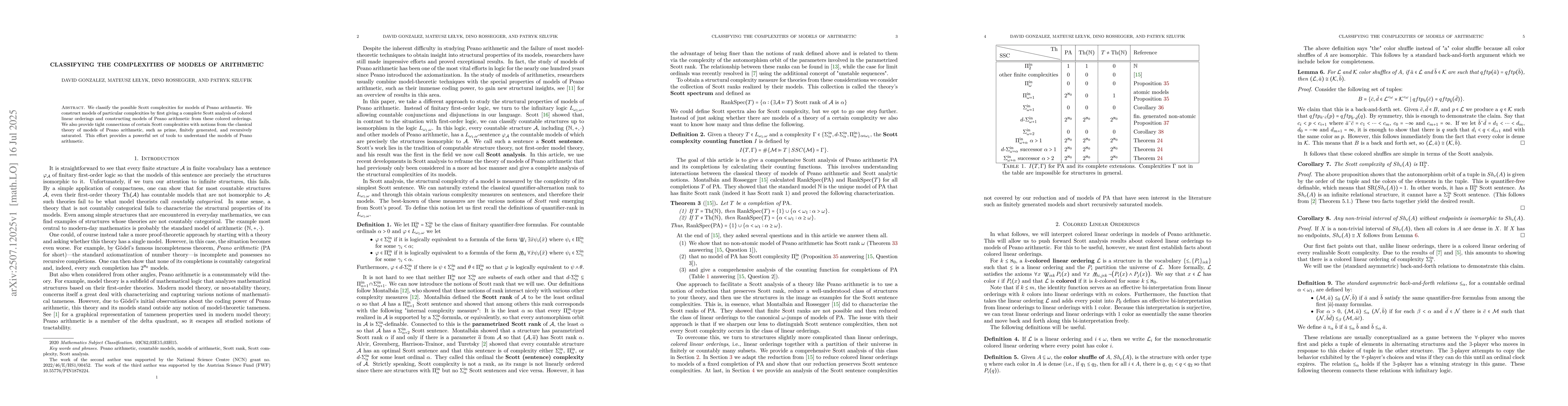 We classify the possible Scott complexities for models of Peano arithmetic. We construct models of particular complexities by first giving a complete Scott analysis of colored linear orderings and constructing models of Peano arithmetic from these colored orderings. We also provide tight connections of certain Scott complexities with notions from the classical theory of models of Peano arithmetic, such as prime, finitely generated, and recursively saturated. This effort provides a powerful set of tools to understand the models of Peano arithmetic.