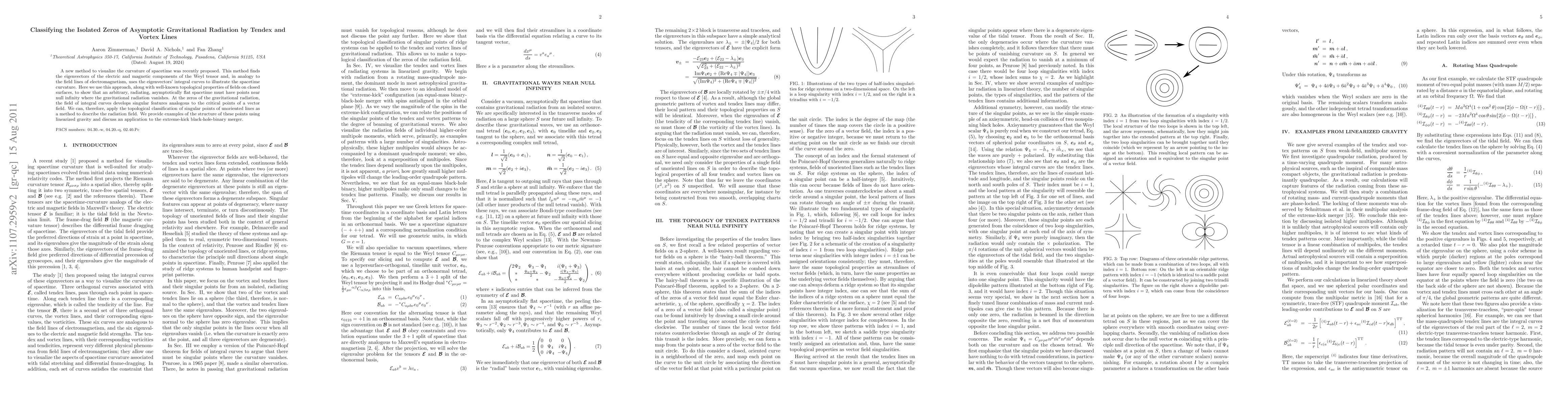 A new method to visualize the curvature of spacetime was recently proposed. This method finds the eigenvectors of the "electric" and "magnetic" components of the Weyl tensor and, in analogy to the field lines of electromagnetism, uses the eigenvectors' integral curves to illustrate the spacetime curvature. Here we use this approach, along with well-known topological properties of fields on closed surfaces, to show that an arbitrary, radiating, asymptotically flat spacetime must have points near null infinity where the gravitational radiation vanishes. At the zeros of the gravitational radiation, the field of integral curves develops singular features analogous to the critical points of a vector field. We can, therefore, apply the topological classification of singular points of unoriented lines as a method to describe the radiation field. We provide examples of the structure of these points using linearized gravity and discuss an application to the extreme-kick black-hole-binary merger.