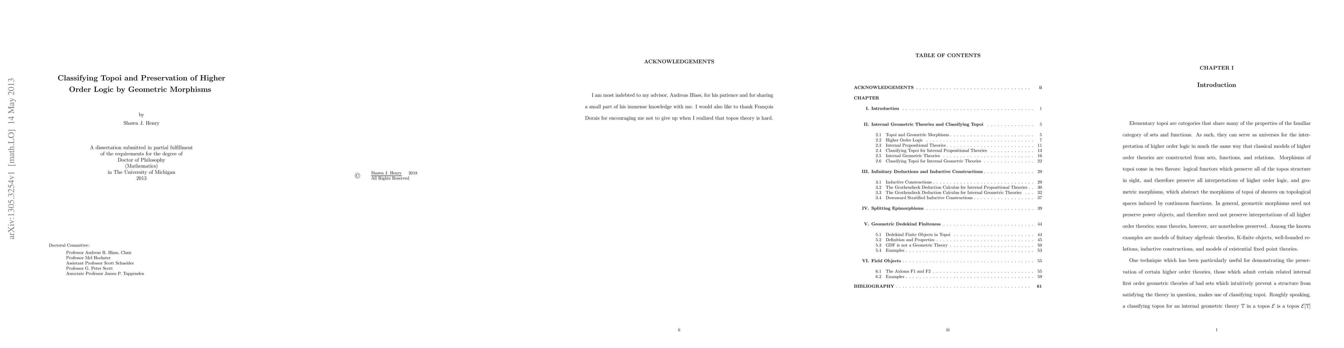 Researchers explore how higher-order logic theories are preserved under geometric morphisms in categories of topos, finding that certain internal geometric theories lead to classifying topoi that can predict theory equivalence.