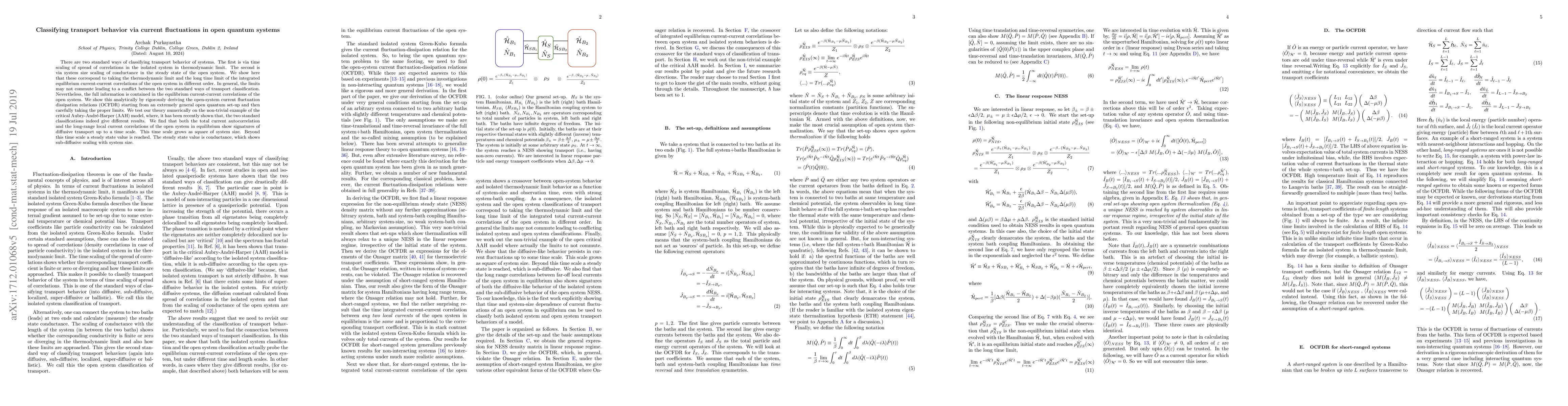 There are two standard ways of classifying transport behavior of systems. The first is via time scaling of spread of correlations in the isolated system in thermodynamic limit. The second is via system size scaling of conductance in the steady state of the open system. We show here that these correspond to taking the thermodynamic limit and the long time limit of the integrated equilibrium current-current correlations of the open system in different order. In general, the limits may not commute leading to a conflict between the two standard ways of transport classification. Nevertheless, the full information is contained in the equilibrium current-current correlations of the open system. We show this analytically by rigorously deriving the open-system current fluctuation dissipation relations (OCFDR) starting from an extremely general open quantum set-up and then carefully taking the proper limits. We test our theory numerically on the non-trivial example of the critical Aubry-Andr\'e-Harper (AAH) model, where, it has been recently shown that, the two standard classifications indeed give different results. We find that both the total current autocorrelation and the long-range local current correlations of the open system in equilibrium show signatures of diffusive transport up to a time scale. This time scale grows as square of system size. Beyond this time scale a steady state value is reached. The steady state value is conductance, which shows sub-diffusive scaling with system size.