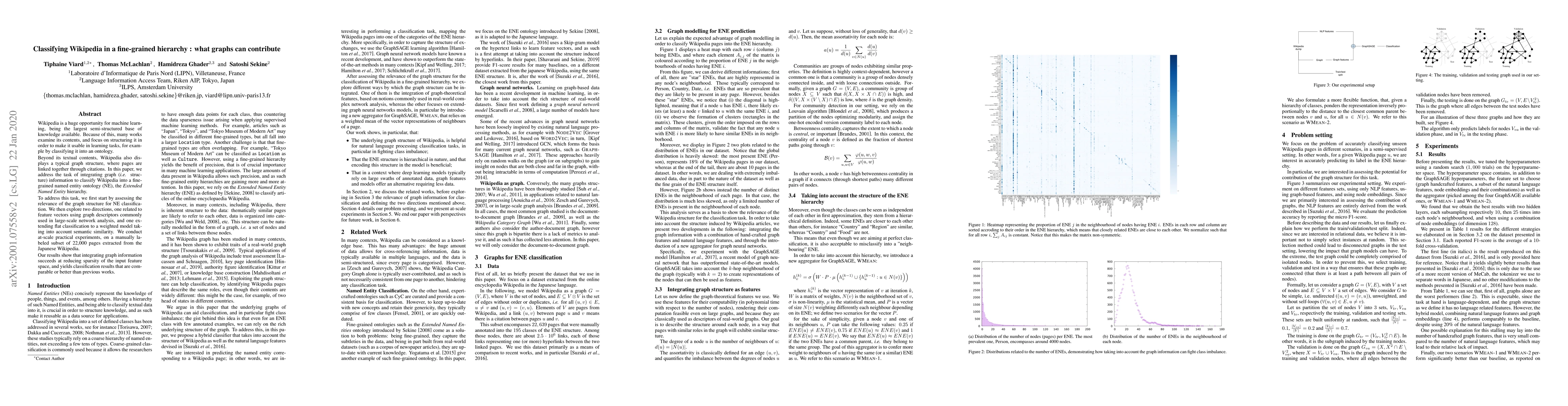 This paper explores integrating Wikipedia's graph structure to classify its content into a fine-grained named entity ontology. Experiments show that incorporating graph information reduces feature space sparsity and improves classification results compared to previous methods.