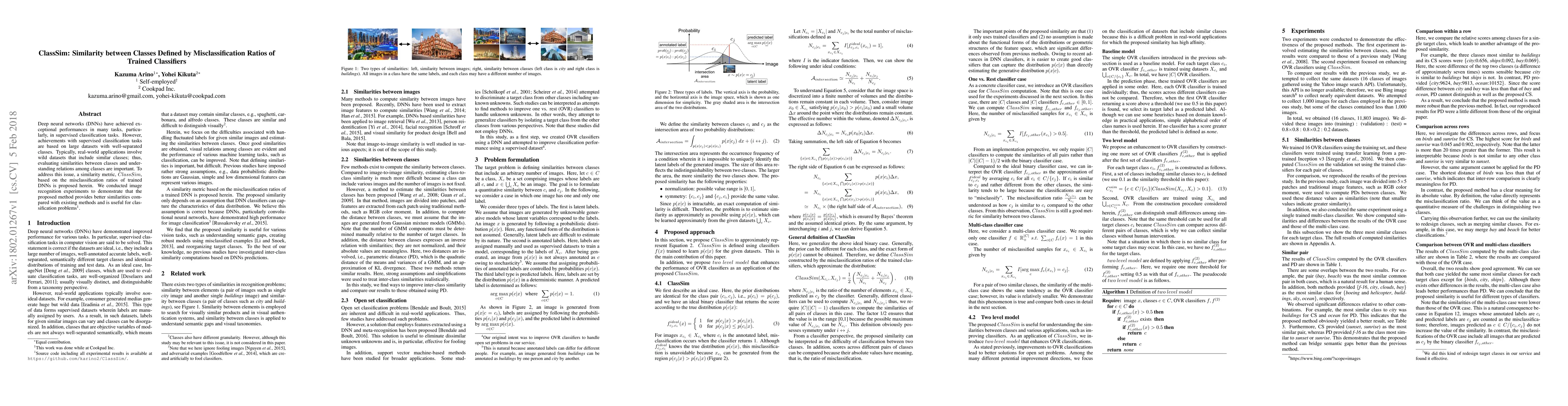 The paper introduces ClassSim, a novel similarity metric based on misclassification ratios of trained deep neural networks, to evaluate relationships between similar classes in wild datasets. Experiments on image recognition show that ClassSim outperforms existing methods in measuring class similarities.