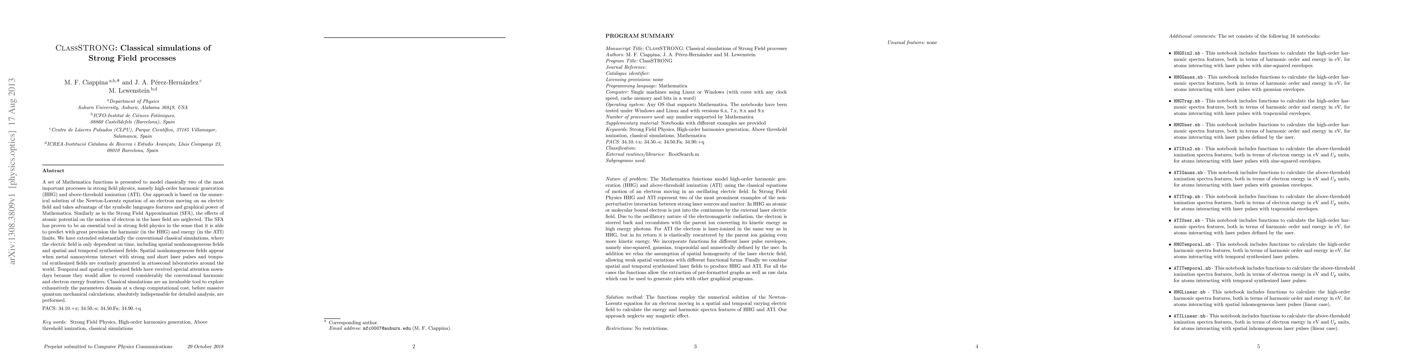 This paper introduces a set of Mathematica functions to classically simulate high-order harmonic generation (HHG) and above-threshold ionization (ATI) in strong field physics, extending conventional models to include spatial nonhomogeneous and temporal synthesized fields. These simulations, while neglecting atomic potential effects, offer a cost-effective way to explore parameter domains before detailed quantum mechanical analyses.