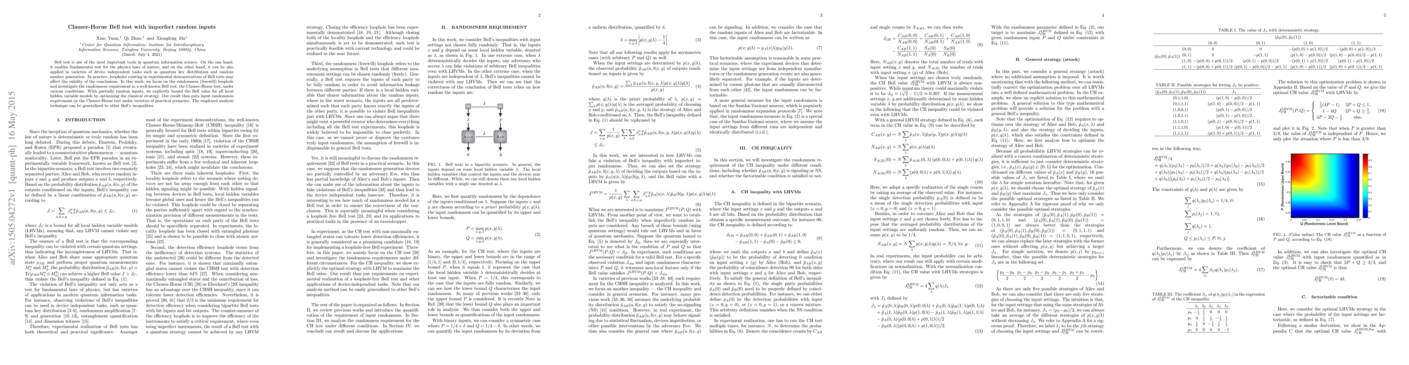 Researchers investigated how well-performing quantum tests can tolerate imperfect randomness in experiments, specifically focusing on a widely-used test called the Clauser-Horne Bell test. They found bounds for the test's performance under various conditions, improving our understanding of what's possible with real-world experiments.