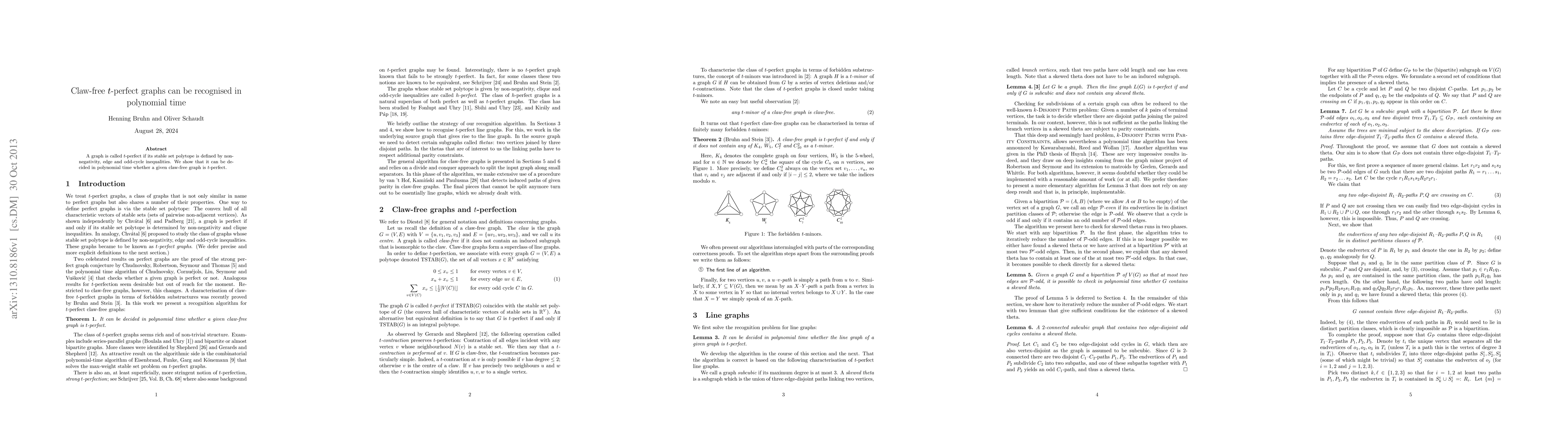 A graph is called t-perfect if its stable set polytope is defined by non-negativity, edge and odd-cycle inequalities. We show that it can be decided in polynomial time whether a given claw-free graph is t-perfect.