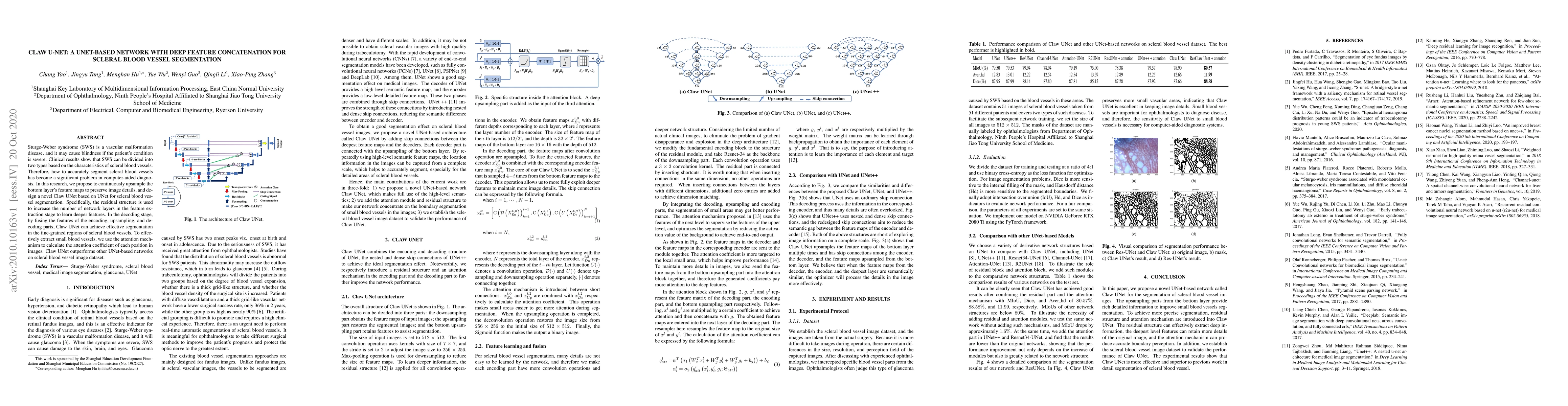 Claw UNet, a novel UNet-based network with deep feature concatenation and attention mechanisms, is proposed for precise segmentation of scleral blood vessels in Sturge-Weber syndrome diagnosis, outperforming other UNet variants in fine-grained region segmentation.