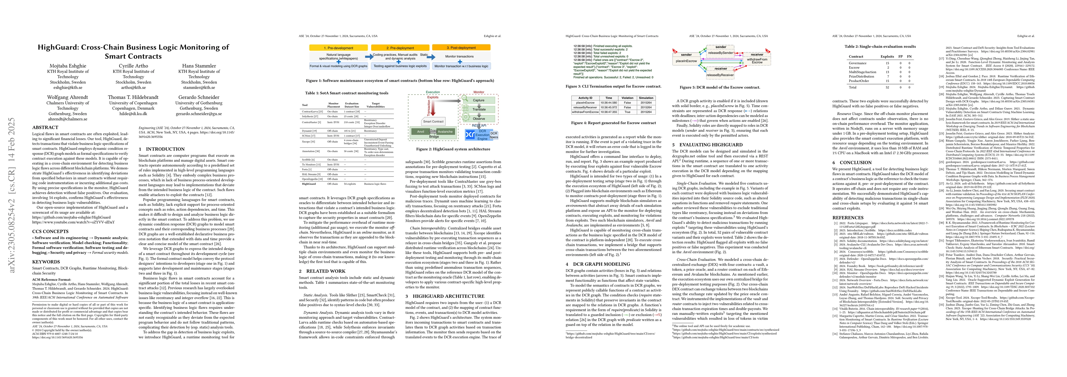 The research presents HighGuard, a runtime monitoring tool for detecting business logic flaws in smart contracts. It leverages DCR graph specifications as oracles to differentiate between intended behavior and interactions violating a contract's intended business logic. HighGuard operates off-chain, avoiding on-chain performance overhead, and supports multiple blockchain simulators for contract deployment, execution of exploits, and monitoring for violations.