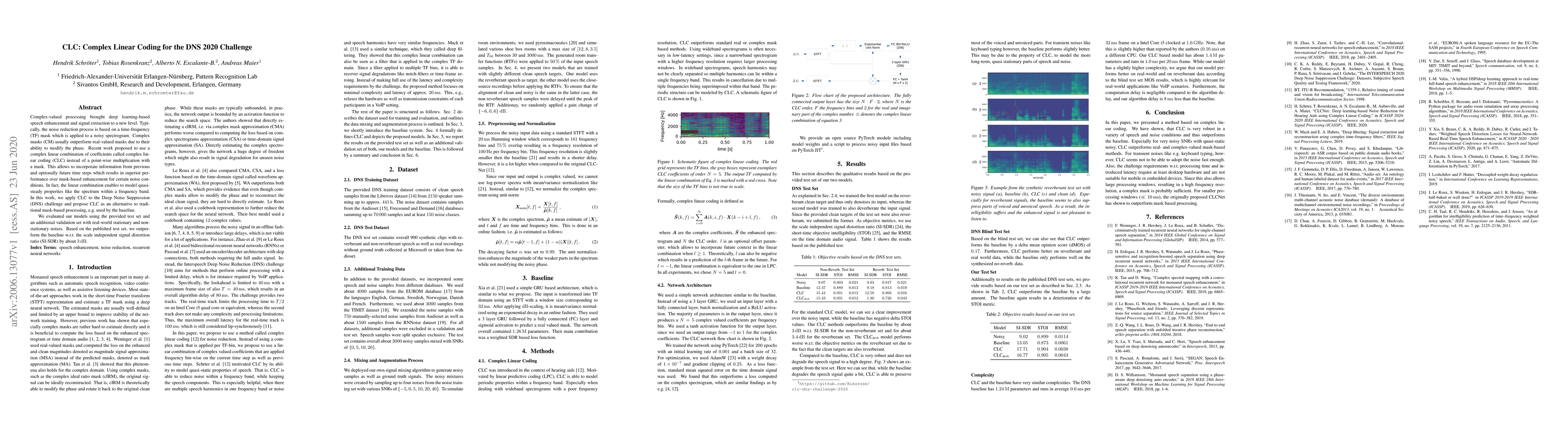 Complex-valued processing brought deep learning-based speech enhancement and signal extraction to a new level. Typically, the noise reduction process is based on a time-frequency (TF) mask which is applied to a noisy spectrogram. Complex masks (CM) usually outperform real-valued masks due to their ability to modify the phase. Recent work proposed to use a complex linear combination of coefficients called complex linear coding (CLC) instead of a point-wise multiplication with a mask. This allows to incorporate information from previous and optionally future time steps which results in superior performance over mask-based enhancement for certain noise conditions. In fact, the linear combination enables to model quasi-steady properties like the spectrum within a frequency band. In this work, we apply CLC to the Deep Noise Suppression (DNS) challenge and propose CLC as an alternative to traditional mask-based processing, e.g. used by the baseline. We evaluated our models using the provided test set and an additional validation set with real-world stationary and non-stationary noises. Based on the published test set, we outperform the baseline w.r.t. the scale independent signal distortion ratio (SI-SDR) by about 3dB.