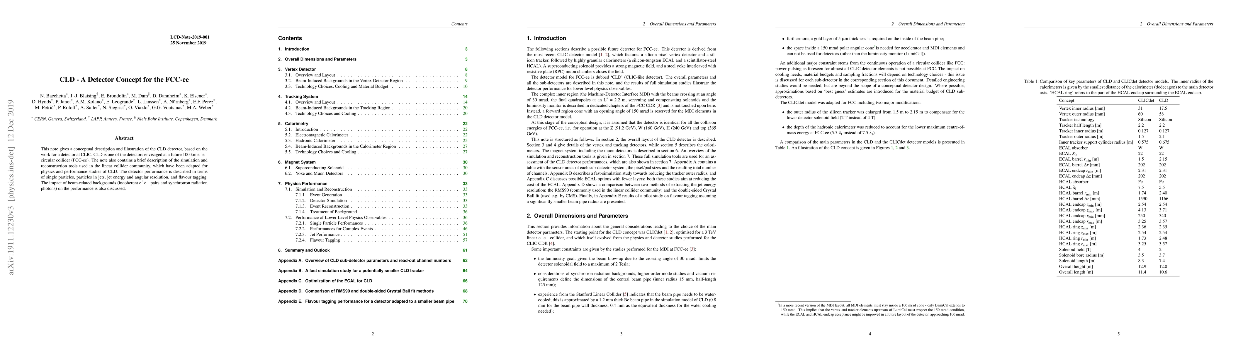 The CLD detector concept, adapted from CLIC work, is proposed for the FCC-ee circular collider, focusing on its performance in particle detection, jet energy and angular resolution, and flavour tagging, while considering beam-related background impacts. Simulation and reconstruction tools from the linear collider community are utilized for its physics and performance studies.