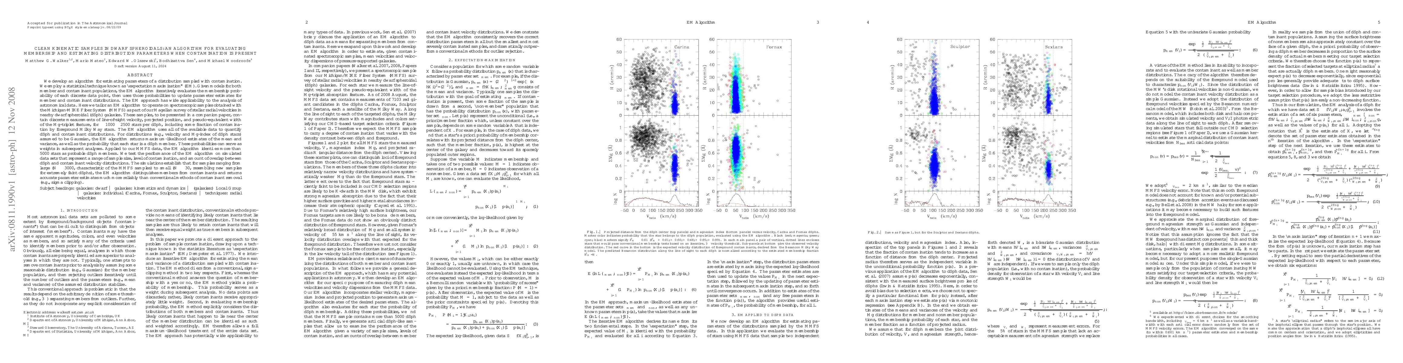 (abridged) We develop an algorithm for estimating parameters of a distribution sampled with contamination, employing a statistical technique known as ``expectation maximization'' (EM). Given models for both member and contaminant populations, the EM algorithm iteratively evaluates the membership probability of each discrete data point, then uses those probabilities to update parameter estimates for member and contaminant distributions. The EM approach has wide applicability to the analysis of astronomical data. Here we tailor an EM algorithm to operate on spectroscopic samples obtained with the Michigan-MIKE Fiber System (MMFS) as part of our Magellan survey of stellar radial velocities in nearby dwarf spheroidal (dSph) galaxies. These samples are presented in a companion paper and contain discrete measurements of line-of-sight velocity, projected position, and Mg index for ~1000 - 2500 stars per dSph, including some fraction of contamination by foreground Milky Way stars. The EM algorithm quantifies both dSph and contaminant distributions, returning maximum-likelihood estimates of the means and variances, as well as the probability that each star is a dSph member. Applied to our MMFS data, the EM algorithm identifies more than 5000 probable dSph members. We test the performance of the EM algorithm on simulated data sets that represent a range of sample size, level of contamination, and amount of overlap between dSph and contaminant velocity distributions. The simulations establish that for samples ranging from large (N ~3000) to small (N~30), the EM algorithm distinguishes members from contaminants and returns accurate parameter estimates much more reliably than conventional methods of contaminant removal (e.g., sigma clipping).