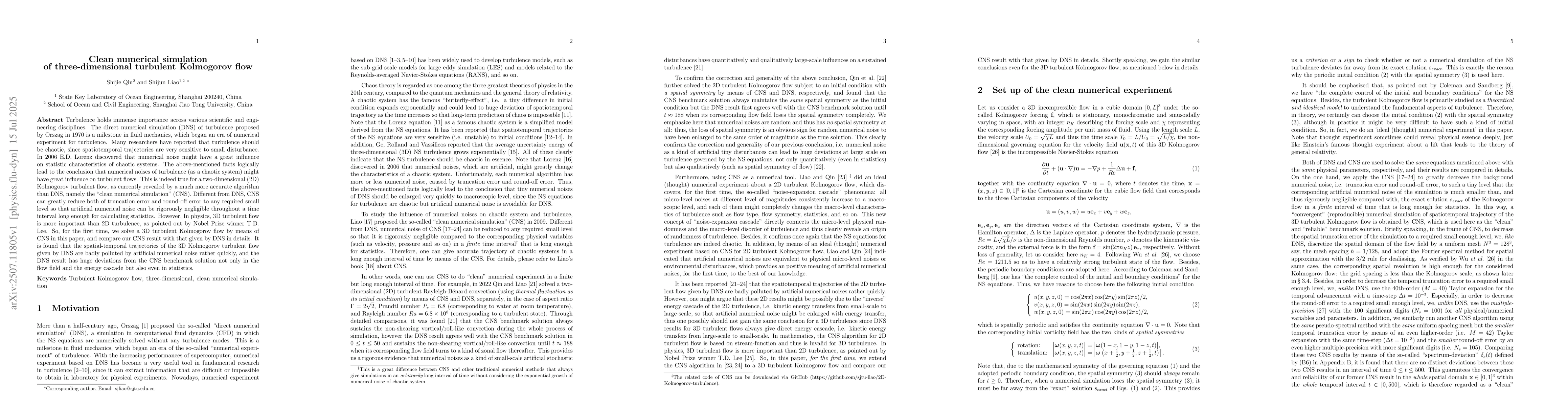 Turbulence holds immense importance across various scientific and engineering disciplines. The direct numerical simulation (DNS) of turbulence proposed by Orszag in 1970 is a milestone in fluid mechanics, which began an era of numerical experiment for turbulence. Many researchers have reported that turbulence should be chaotic, since spatiotemporal trajectories are very sensitive to small disturbance. In 2006 E.D. Lorenz discovered that numerical noise might have a great influence on statistic characteristics of chaotic systems. The above-mentioned facts logically lead to the conclusion that numerical noises of turbulence (as a chaotic system) might have great influence on turbulent flows. This is indeed true for a two-dimensional (2D) Kolmogorov turbulent flow, as currently revealed by a much more accurate algorithm than DNS, namely the ``clean numerical simulation'' (CNS). Different from DNS, CNS can greatly reduce both of truncation error and round-off error to any required small level so that artificial numerical noise can be rigorously negligible throughout a time interval long enough for calculating statistics. However, In physics, 3D turbulent flow is more important than 2D turbulence, as pointed out by Nobel Prize winner T.D. Lee. So, for the first time, we solve a 3D turbulent Kolmogorov flow by means of CNS in this paper, and compare our CNS result with that given by DNS in details. It is found that the spatial-temporal trajectories of the 3D Kolmogorov turbulent flow given by DNS are badly polluted by artificial numerical noise rather quickly, and the DNS result has huge deviations from the CNS benchmark solution not only in the flow field and the energy cascade but also even in statistics.