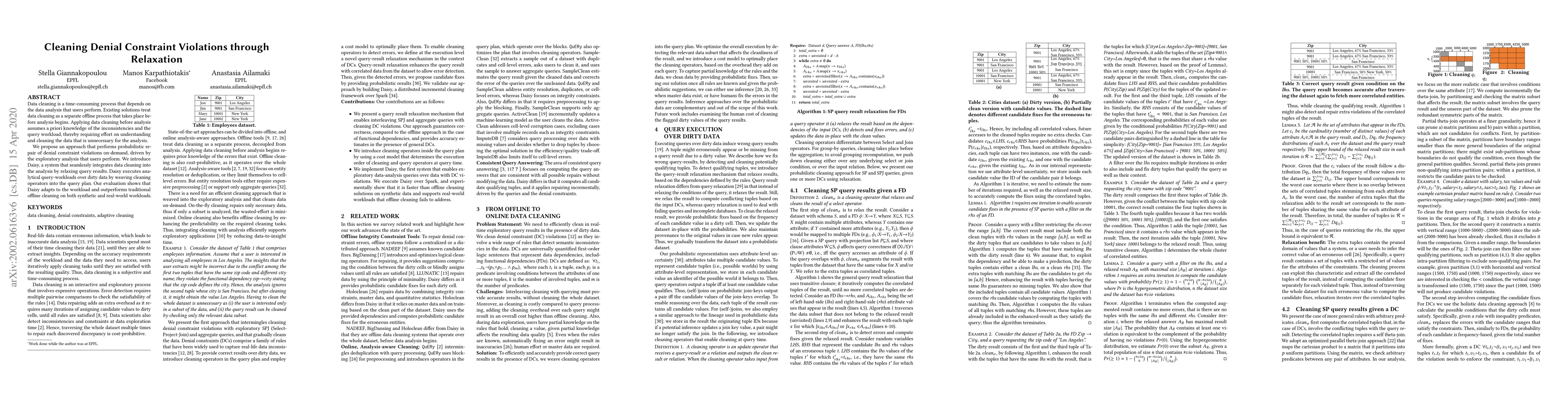 Data cleaning is a time-consuming process that depends on the data analysis that users perform. Existing solutions treat data cleaning as a separate offline process that takes place before analysis begins. Applying data cleaning before analysis assumes a priori knowledge of the inconsistencies and the query workload, thereby requiring effort on understanding and cleaning the data that is unnecessary for the analysis. We propose an approach that performs probabilistic repair of denial constraint violations on-demand, driven by the exploratory analysis that users perform. We introduce Daisy, a system that seamlessly integrates data cleaning into the analysis by relaxing query results. Daisy executes analytical query-workloads over dirty data by weaving cleaning operators into the query plan. Our evaluation shows that Daisy adapts to the workload and outperforms traditional offline cleaning on both synthetic and real-world workloads.