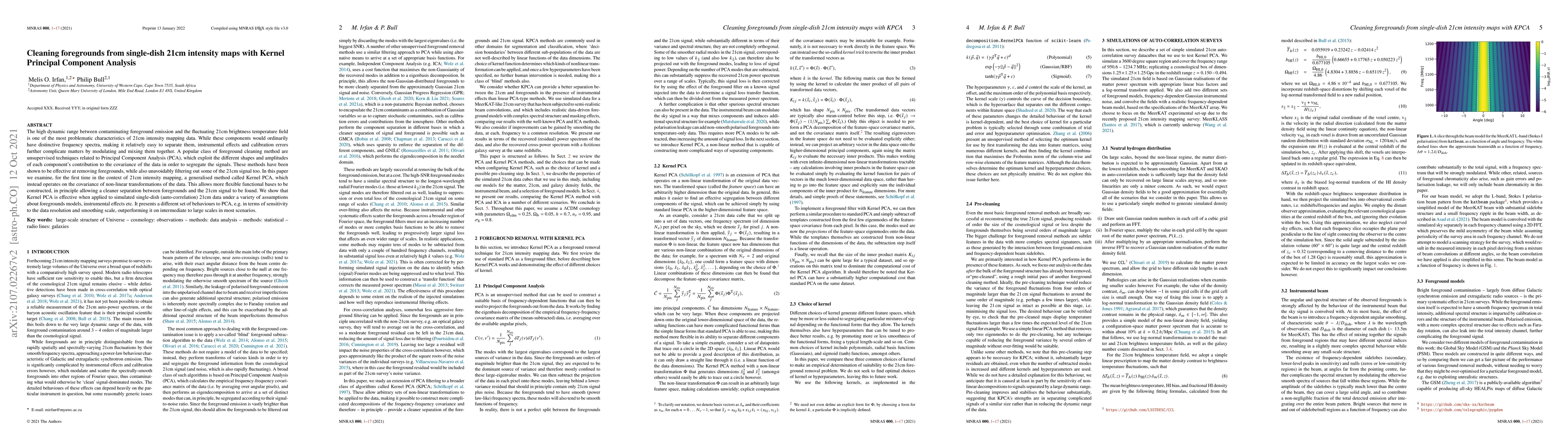 This paper explores the use of Kernel Principal Component Analysis (PCA) to clean foregrounds from single-dish 21cm intensity maps, demonstrating that it outperforms traditional PCA by providing a more flexible functional basis for separating foregrounds from the 21cm signal, especially on intermediate to large scales.
