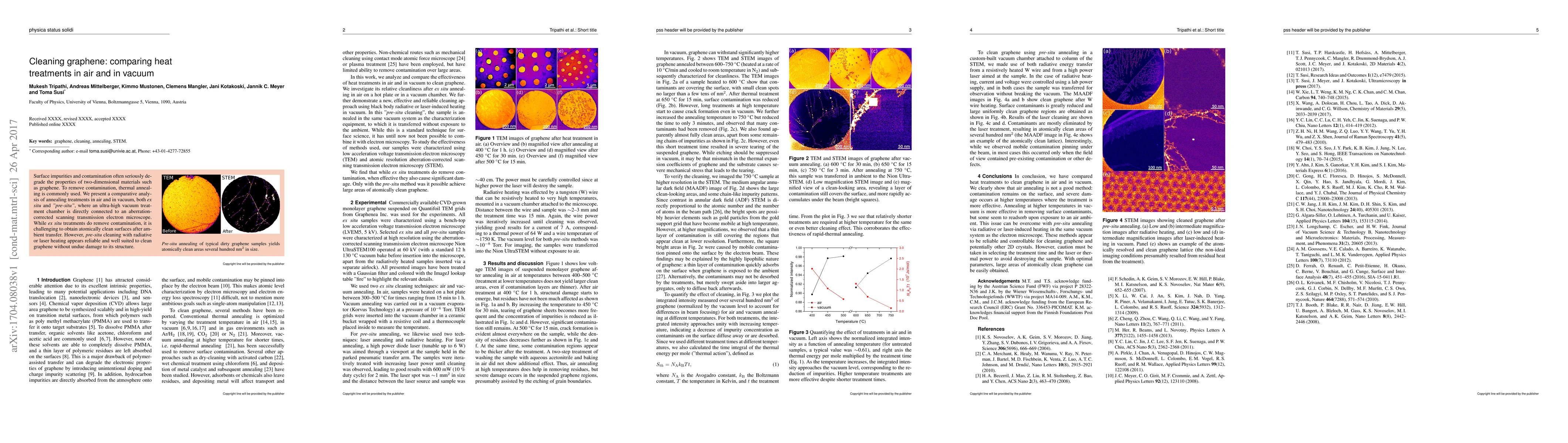 Researchers compared heat treatments in air and vacuum to clean graphene, finding that pre-situ cleaning with radiation or laser heating is a reliable method for removing contamination without damaging the material's structure.