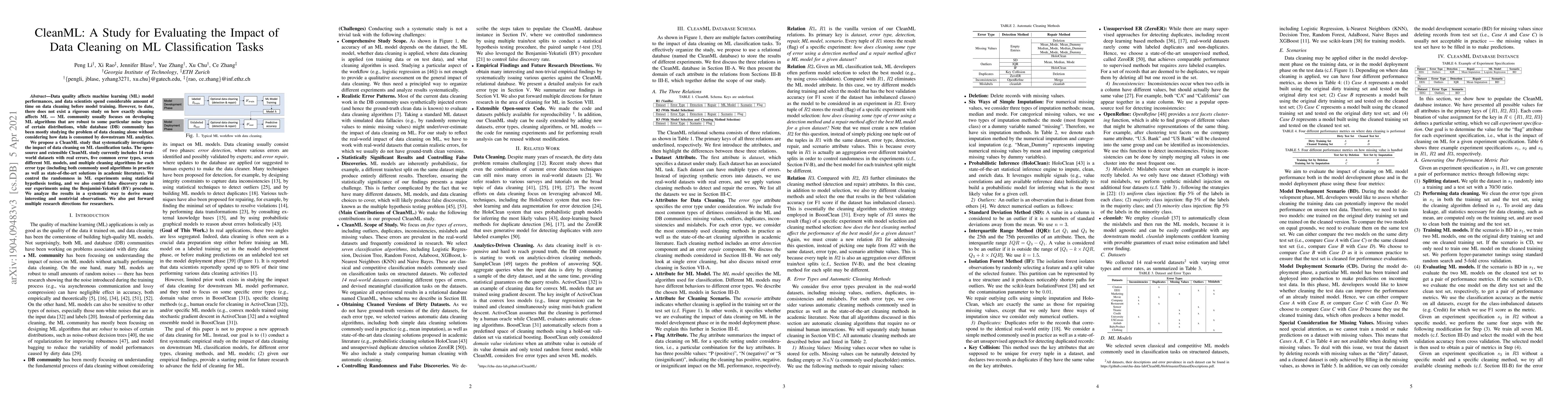 The CleanML study systematically evaluates the impact of data cleaning on ML classification tasks using 14 real-world datasets, seven ML models, and various cleaning algorithms. The study reveals significant insights into how data cleaning influences model performance and proposes several research directions.