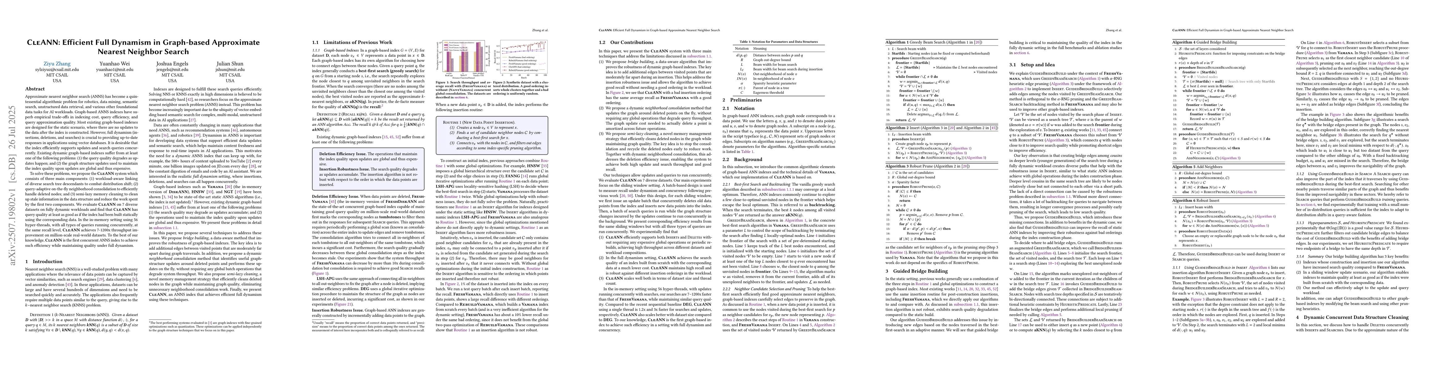 Approximate nearest neighbor search (ANNS) has become a quintessential algorithmic problem for various other foundational data tasks for AI workloads. Graph-based ANNS indexes have superb empirical trade-offs in indexing cost, query efficiency, and query approximation quality. Most existing graph-based indexes are designed for the static scenario, where there are no updates to the data after the index is constructed. However, full dynamism (insertions, deletions, and searches) is crucial to providing up-to-date responses in applications using vector databases. It is desirable that the index efficiently supports updates and search queries concurrently. Existing dynamic graph-based indexes suffer from at least one of the following problems: (1) the query quality degrades as updates happen; and (2) the graph structure updates used to maintain the index quality upon updates are global and thus expensive. To solve these problems, we propose the CleANN system which consists of three main components: (1) workload-aware linking of diverse search tree descendants to combat distribution shift; (2)query-adaptive on-the-fly neighborhood consolidation to efficiently handle deleted nodes; and (3) semi-lazy memory cleaning to clean up stale information in the data structure and reduce the work spent by the first two components. We evaluate CleANN on 7 diverse datasets on fully dynamic workloads and find that CleANN has query quality at least as good as if the index had been built statically using the corresponding data. In the in-memory setting using 56 hyper-threads, with all types of queries running concurrently, at the same recall level, CleANN achieves 7-1200x throughput improvement on million-scale real-world datasets. To the best of our knowledge, CleANN is the first concurrent ANNS index to achieve such efficiency while maintaining quality under full dynamism.