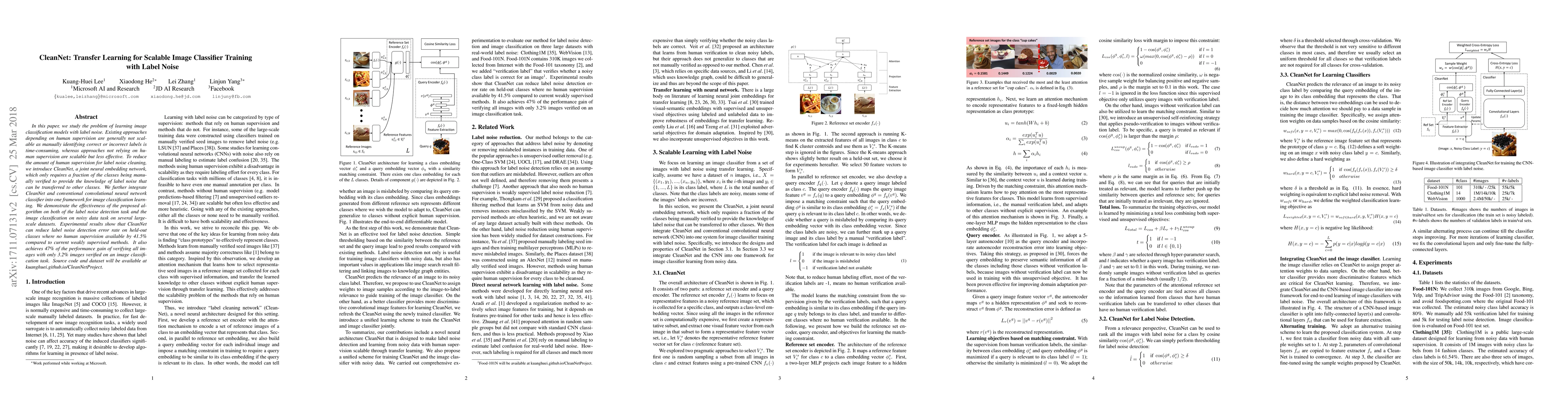 CleanNet proposes a scalable image classifier training method with label noise that requires only a fraction of manual verification for knowledge transfer, achieving significant performance gains on noisy data tasks.