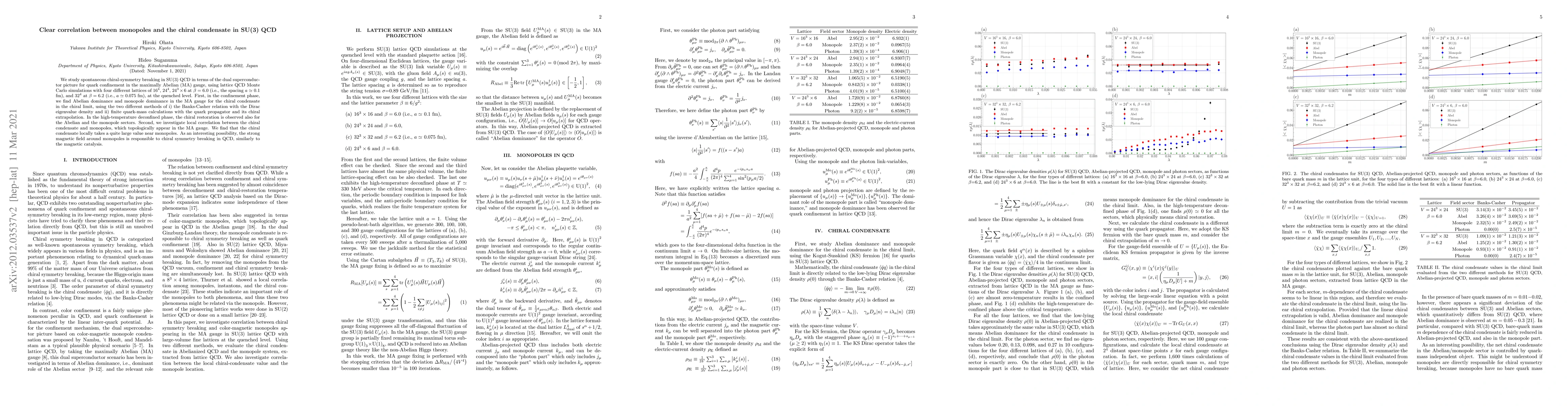 We study spontaneous chiral-symmetry breaking in SU(3) QCD in terms of the dual superconductor picture for quark confinement in the maximally Abelian (MA) gauge, using lattice QCD Monte Carlo simulations with four different lattices of $16^4$, $24^4$, $24^3\times 6$ at $\beta=6.0$ (i.e., the spacing $a \simeq$ 0.1 fm), and $32^4$ at $\beta=6.2$ (i.e., $a \simeq$ 0.075 fm), at the quenched level. First, in the confinement phase, we find Abelian dominance and monopole dominance in the MA gauge for the chiral condensate in the chiral limit,using the two different methods of i) the Banks-Casher relation with the Dirac eigenvalue density and ii) finite quark-mass calculations with the quark propagator and its chiral extrapolation. In the high-temperature deconfined phase, the chiral restoration is observed also for the Abelian and the monopole sectors. Second, we investigate local correlation between the chiral condensate and monopoles, which topologically appear in the MA gauge. We find that the chiral condensate locally takes a quite large value near monopoles. As an interesting possibility, the strong magnetic field around monopoles is responsible to chiral symmetry breaking in QCD, similarly to the magnetic catalysis.