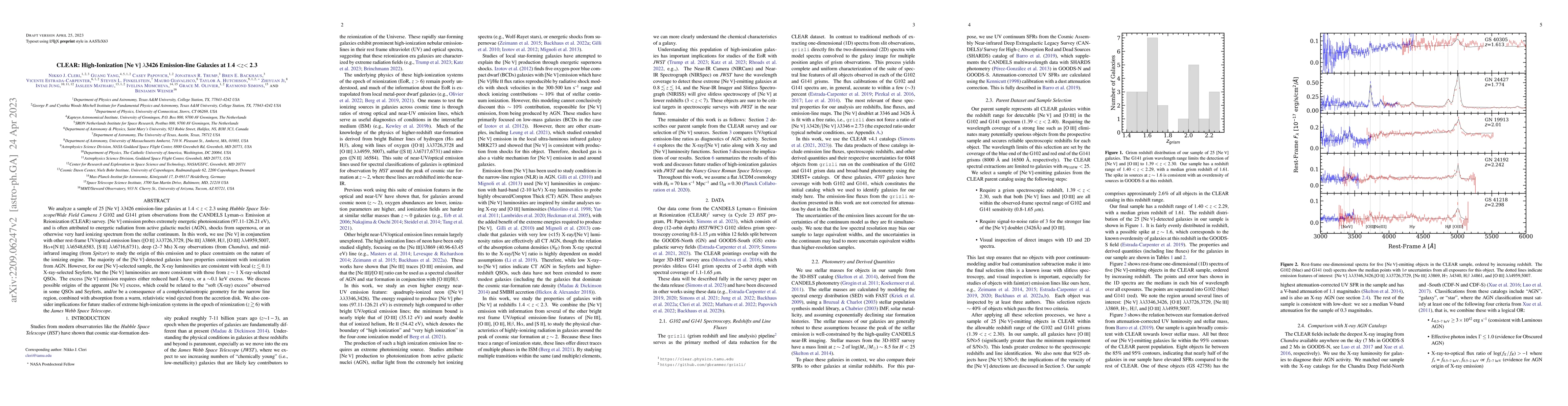 This study analyzes 25 high-ionization [Ne V] emission-line galaxies at $1.4<z<2.3$ to identify the source of their extreme ionization, finding that the majority likely originate from active galactic nuclei (AGN). The [Ne V] emission suggests a complex ionizing environment, potentially involving AGN, supernova shocks, or hard stellar spectra, and raises questions about the nature of the ionizing source and its implications for future studies with JWST.