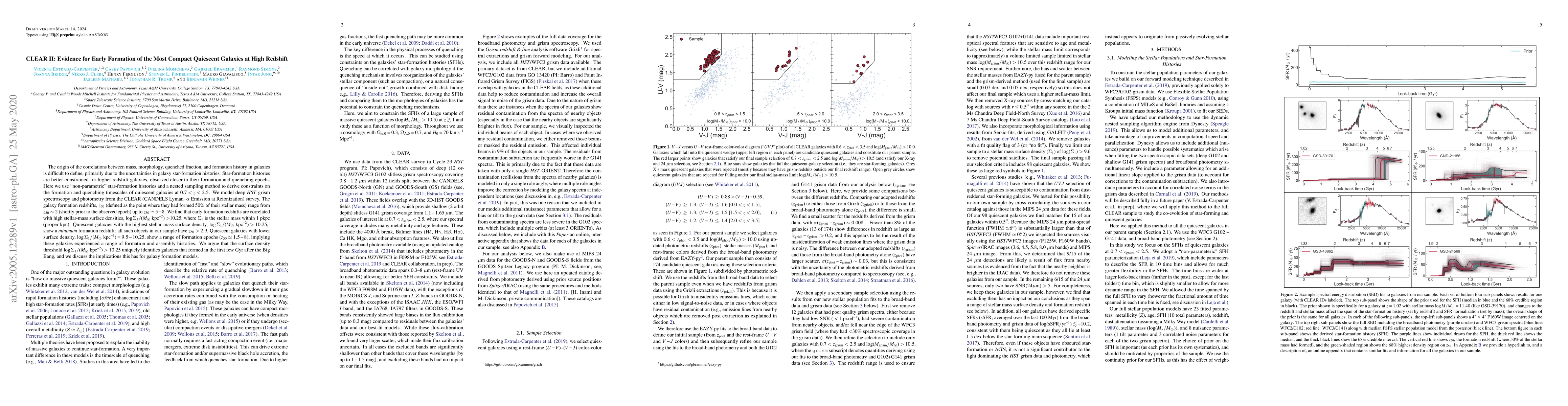 The CLEAR II study reveals that the most compact quiescent galaxies formed early in the universe, with a formation redshift ($z_{50}$) greater than 2.9 for those with high stellar-mass surface densities ($\log \Sigma_1 > 10.25$). These galaxies likely formed within the first few billion years after the Big Bang, indicating a distinct formation history compared to less dense galaxies.