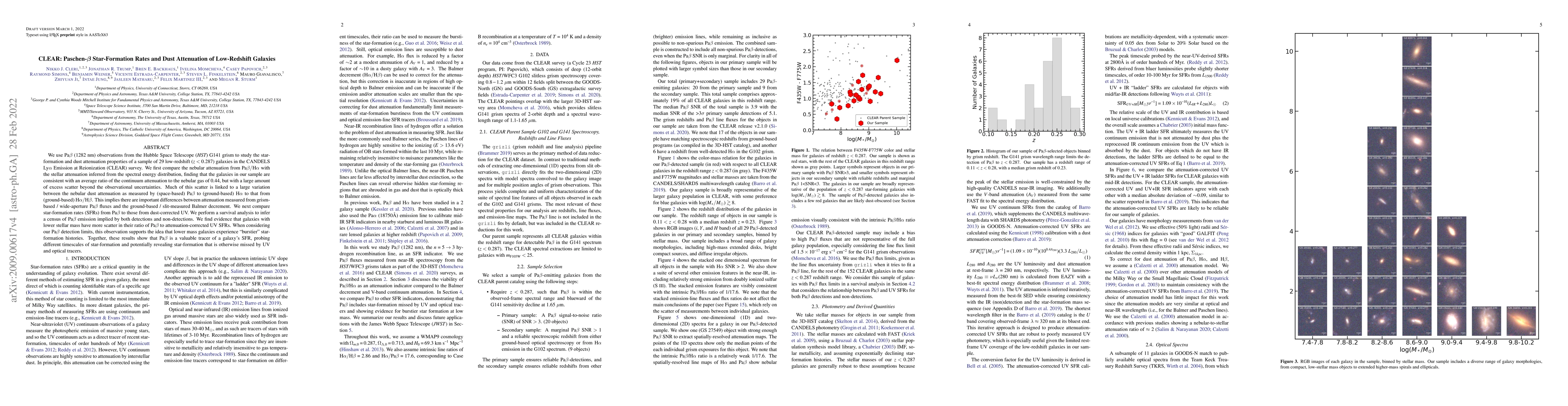 We use \Pab\ (1282~nm) observations from the Hubble Space Telescope ($\HST$) G141 grism to study the star-formation and dust attenuation properties of a sample of 29 low-redshift ($z < 0.287$) galaxies in the CANDELS Ly$\alpha$ Emission at Reionization (CLEAR) survey. We first compare the nebular attenuation from $\Pab/\Ha$ with the stellar attenuation inferred from the spectral energy distribution, finding that the galaxies in our sample are consistent with an average ratio of the continuum attenuation to the nebular gas of 0.44, but with a large amount of excess scatter beyond the observational uncertainties. Much of this scatter is linked to a large variation between the nebular dust attenuation as measured by (space-based) $\Pab$ to (ground-based) $\Ha$ to that from (ground-based) $\Ha/\Hb$. This implies there are important differences between attenuation measured from grism-based / wide-aperture $\Pab$ fluxes and the ground-based / slit-measured Balmer decrement. We next compare star-formation rates (SFRs) from $\Pab$ to those from dust-corrected UV. We perform a survival analysis to infer a census of \Pab\ emission implied by both detections and non-detections. We find evidence that galaxies with lower stellar mass have more scatter in their ratio of \Pab\ to attenuation-corrected UV SFRs. When considering our \Pab\ detection limits, this observation supports the idea that lower mass galaxies experience "burstier" star-formation histories. Together, these results show that \Pab\ is a valuable tracer of a galaxy's SFR, probing different timescales of star-formation and potentially revealing star-formation that is otherwise missed by UV and optical tracers.